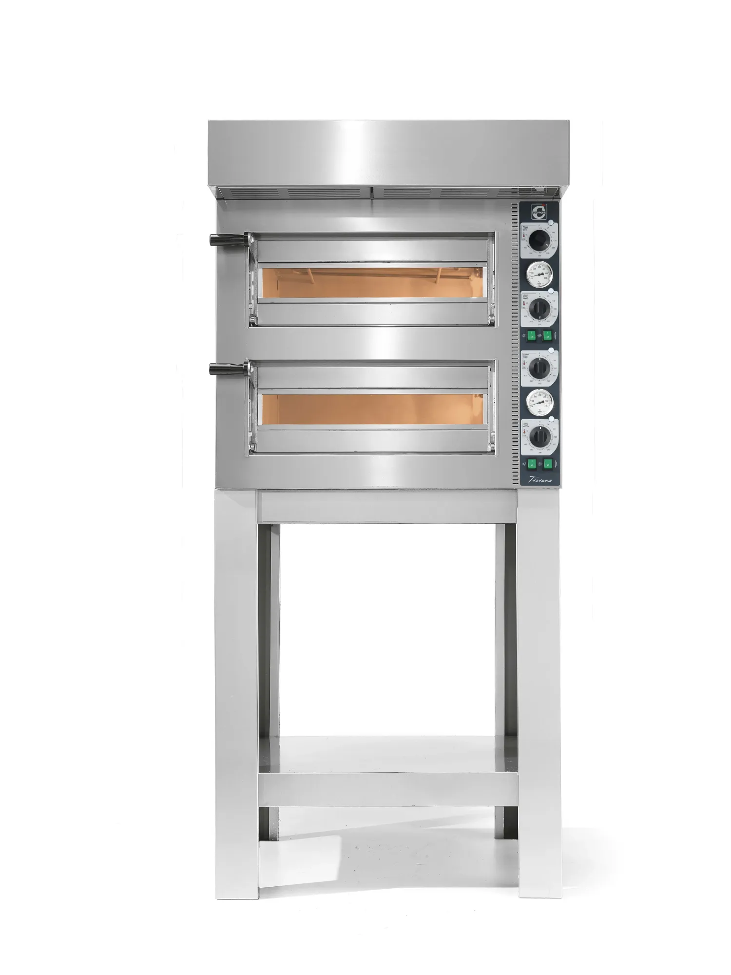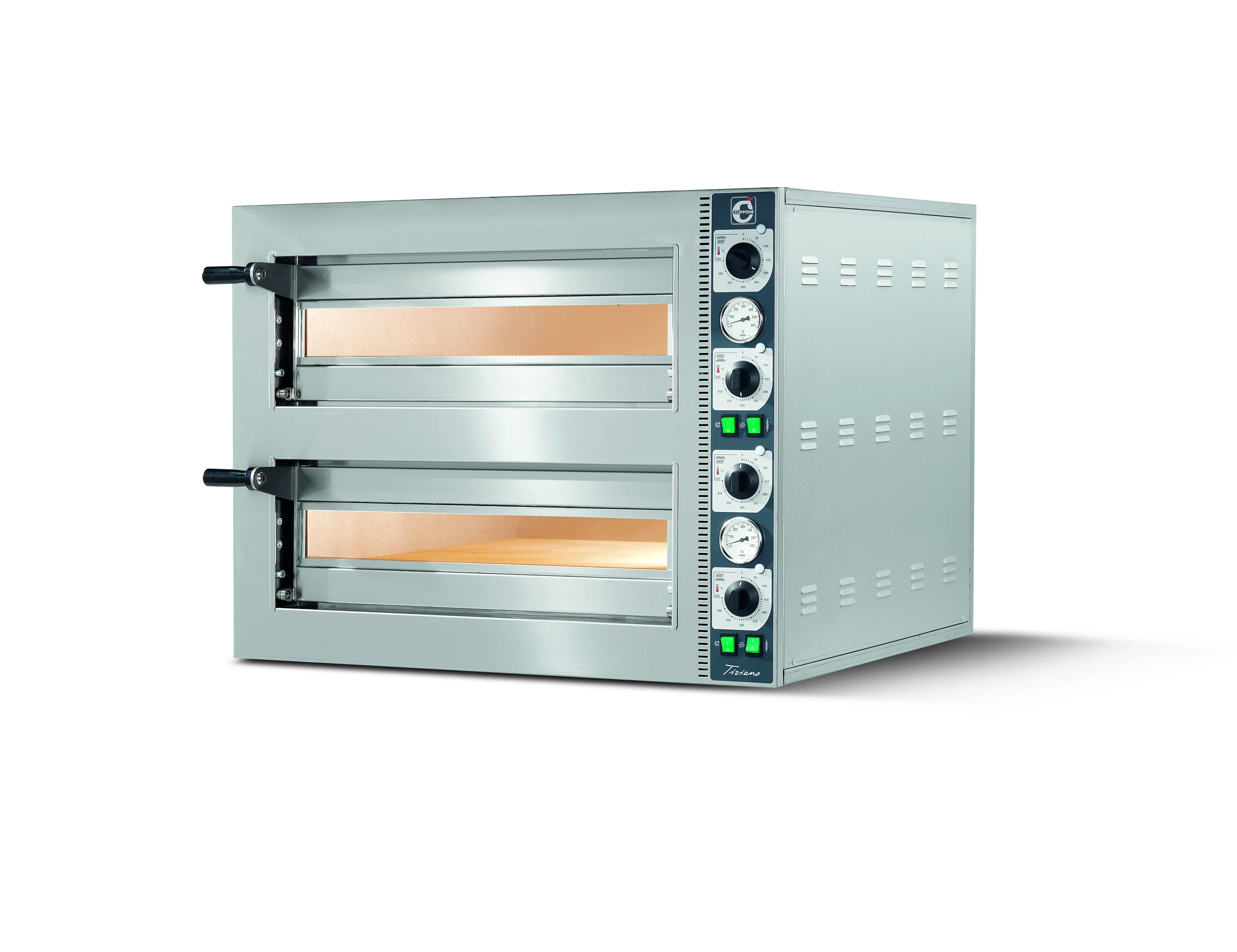 The Cuppone LLKTZ6202 Tiziano Twin Deck Electric Pizza Oven is a great value and reliable electric pizza oven made in Italy. It is perfect for quickly and efficiently cooking authentic, stone-baked pizza in bistros, restaurants, or takeaways.