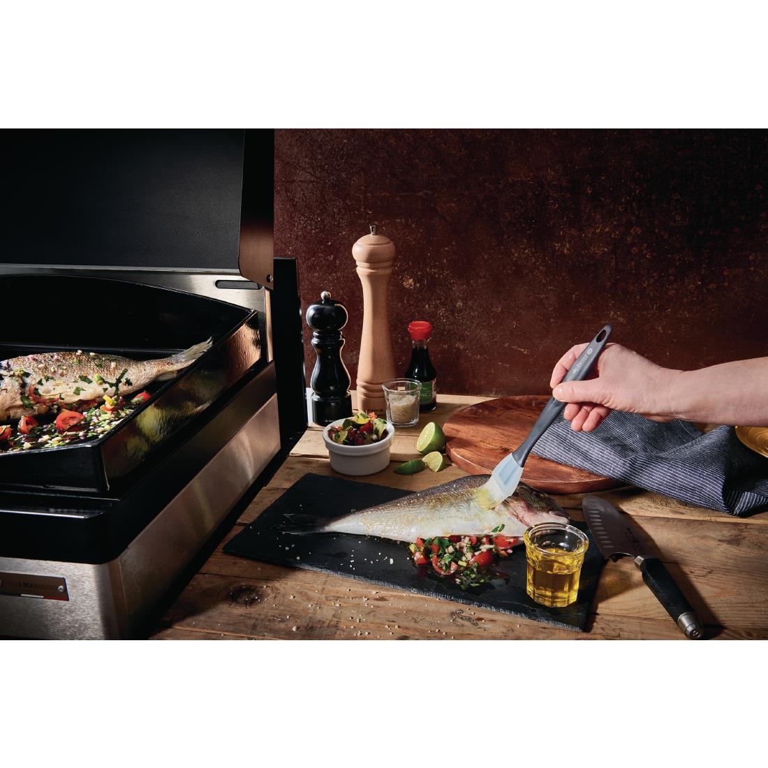 Whether used to brush melted butter, to apply a glaze or decorate sweet treats, the silicone brush from De Buyer is exactly what you need. The bristles of this brush are made of silicone that are ultra-soft so it doesn't damage your food, whilst ensuring an even spread. This silicone material also makes the brush quick and easy to clean. And thanks to its high heat resistance, the De Buyer brush can be used on hot food without burning.