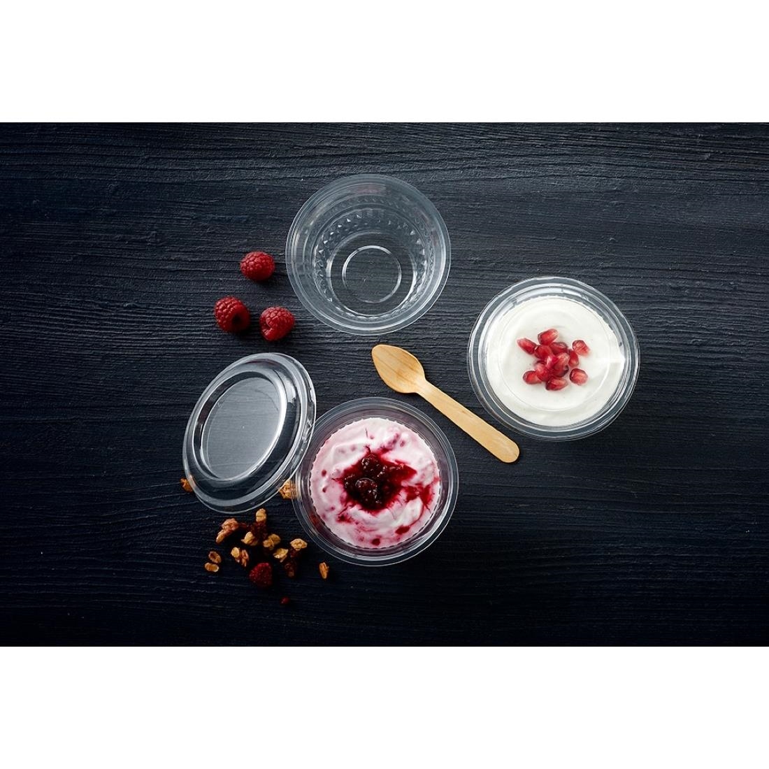 Maximise on-shelf appeal to attract customers and drive sales with these 118ml Diamond deli pots. The deli pots are made from 90% recycled PET, meaning they're fully recyclable and require less energy and raw materials in the production process than virgin plastic alternatives. Their leak-proof design makes them ideal for serving anything from fresh fruit to yoghurt pots. And thanks to the transparent material, the pots allow customers to browse your products with ease.