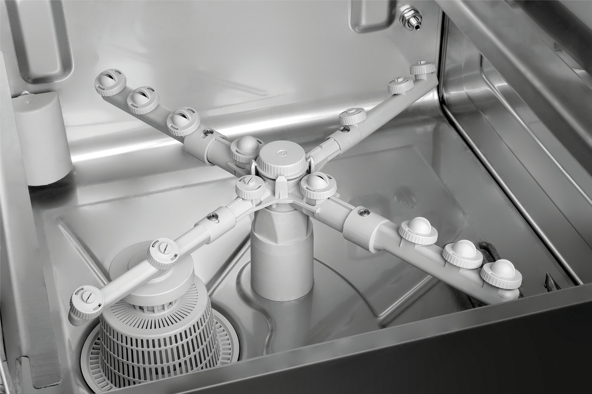 Thanks to this flexible glass washer with a cold rinse function, glasses are ready for reuse very quickly. It is also perfect for use in other washing areas in cafeterias, bars, and cafes. The small display allows you to monitor the settings and program progress at all times.