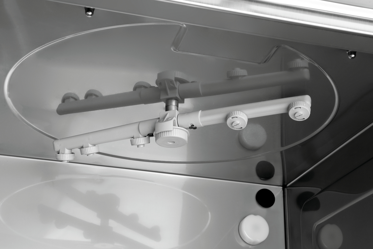 Thanks to this flexible glass washer with a cold rinse function, glasses are ready for reuse quickly. It is also perfect for use in other washing areas in cafeterias, bars, and cafes. The small display allows you to monitor the settings and program progress at all times.