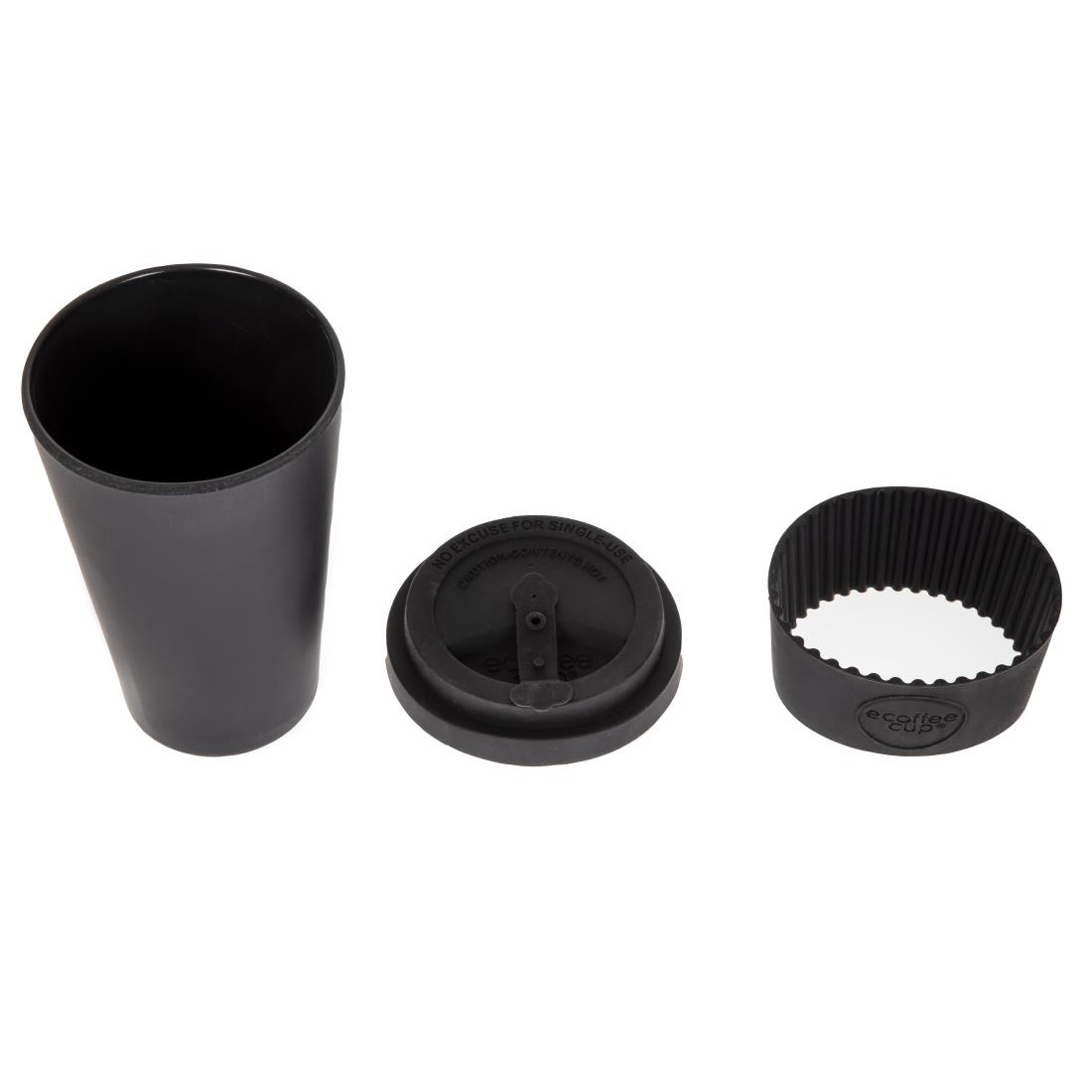 A 14oz reusable coffee cup made with highly renewable bamboo fibre. This sleek, black travel mug is a great green alternative to single-use disposable cups.