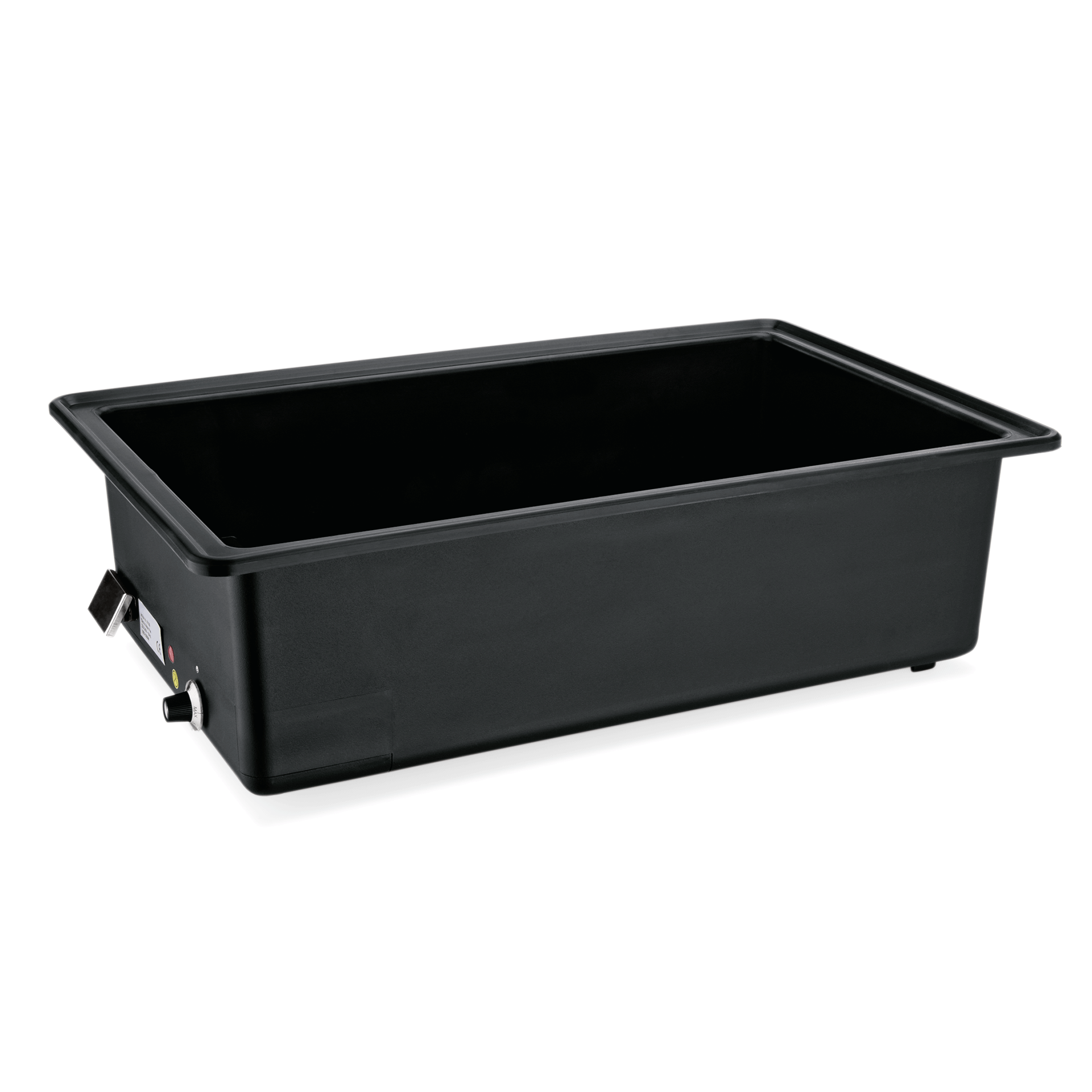 The product features a control thermostat designed for GN pans with dimensions of 1/1 - 100 mm or for accommodating two GN pans of size 1/2.