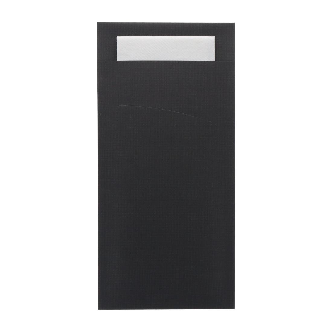 Europochette Extra Size Black Cutlery Pouch with White Airlaid Napkin (200 pack)