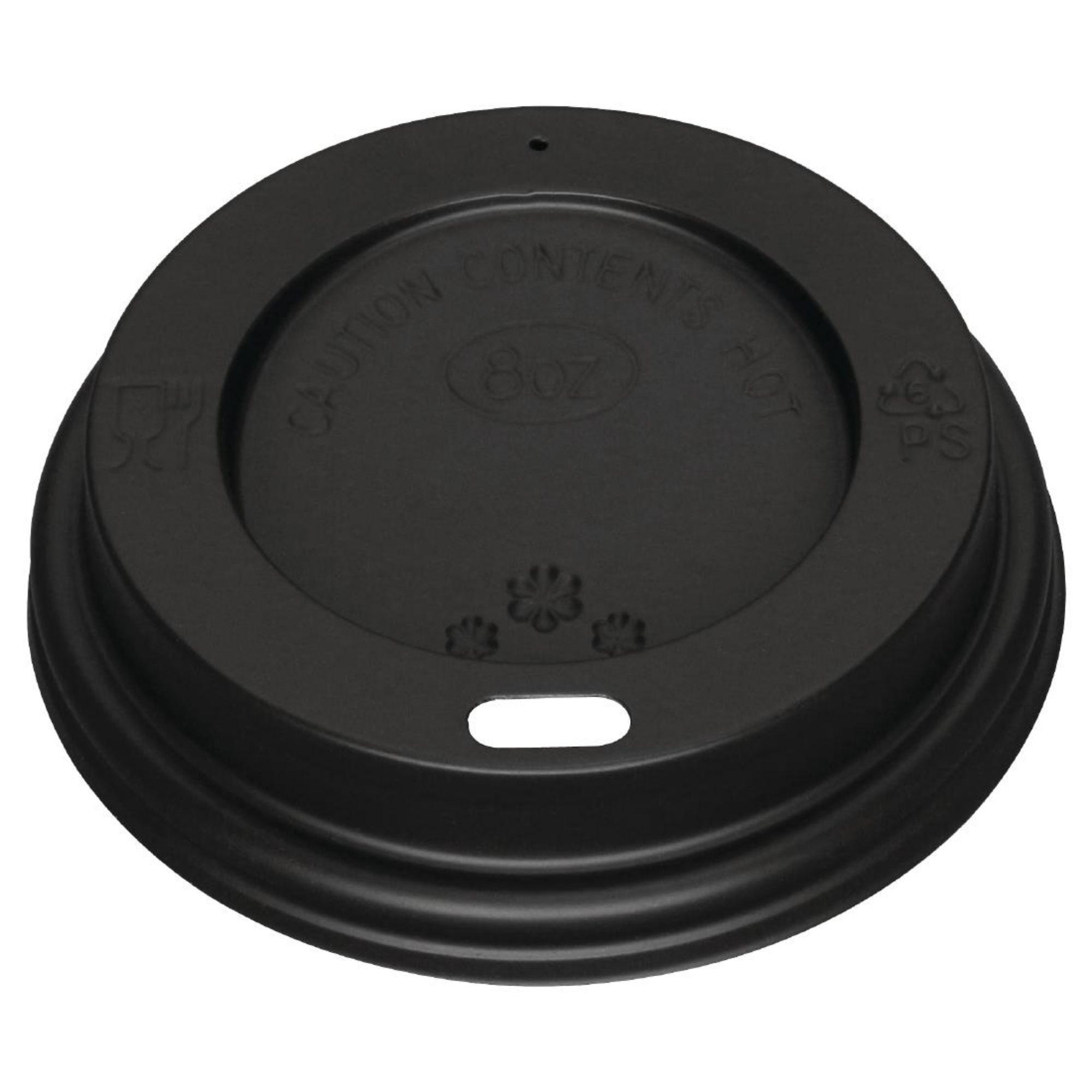 The small hole in the lid ensures easy sipping while giving customers plenty of room to fit stirrers or straws, making it ideal for guests who want to drink on-the-go without worrying about opening the lid. Each lid features an "8oz" marking on the top, making it easy for your staff to find the correct one to suit your 8oz cups. They are also clearly marked with "Caution Contents Hot," reminding your customers to take care when enjoying their hot drinks.