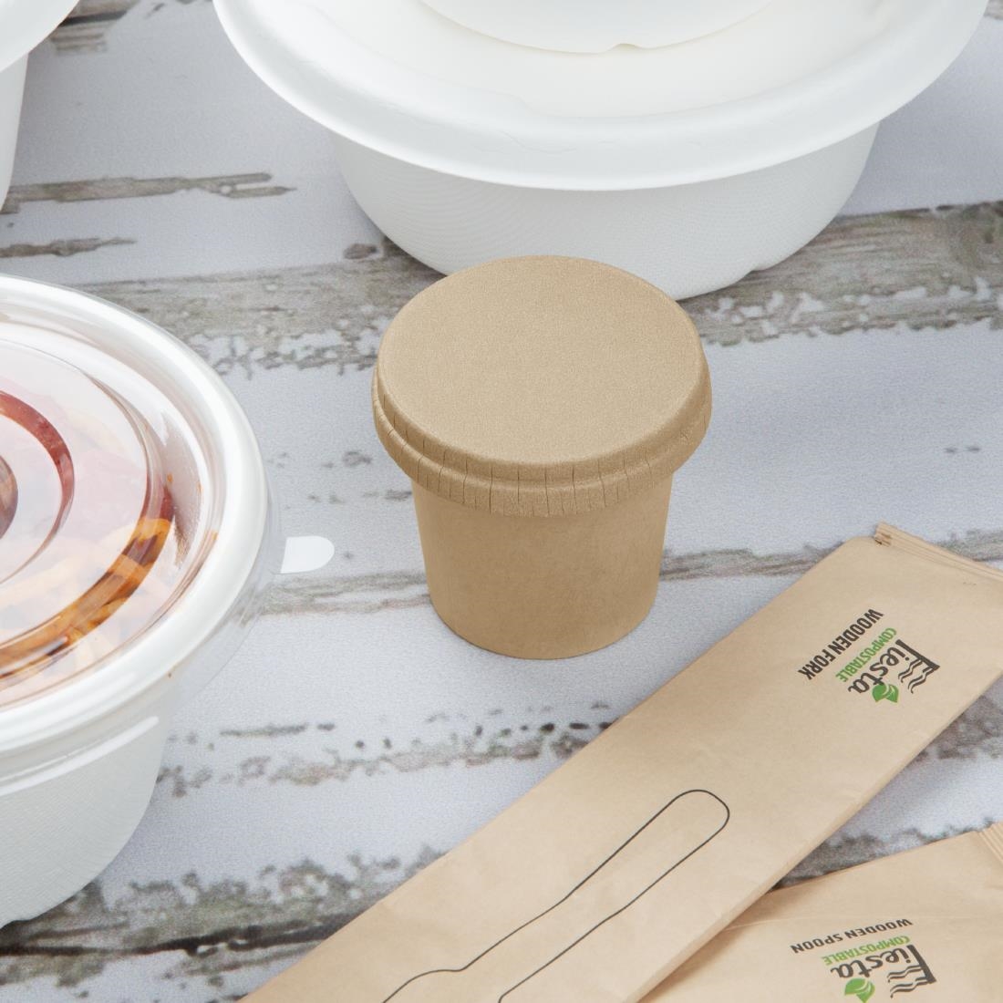 Fiesta's recyclable condiment, sauce, and portion pots offer a greener alternative to plastic products. These condiment pots are made from paper and can be recycled through the same recycling streams as hot cups. This will help you and your customers divert waste away from harmful landfill sites and into more environmentally responsible disposal streams. The PE lining ensures sauces and garnishes will not spill out onto other food when being delivered, eliminating concerns about messy spills.