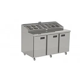 The Foster FPS1/3HR-101/15-113 Refrigerated Prep Counter is designed to hold fresh ingredients efficiently at the point of preparation. It features a fan-assisted forced air refrigeration system that ensures even temperatures throughout the counter base and pan storage section, regardless of the surrounding environment. Additionally, this unit is equipped with a roller blind night cover, which facilitates energy-saving operation when the unit is not in use, thereby enhancing cost-effectiveness.
