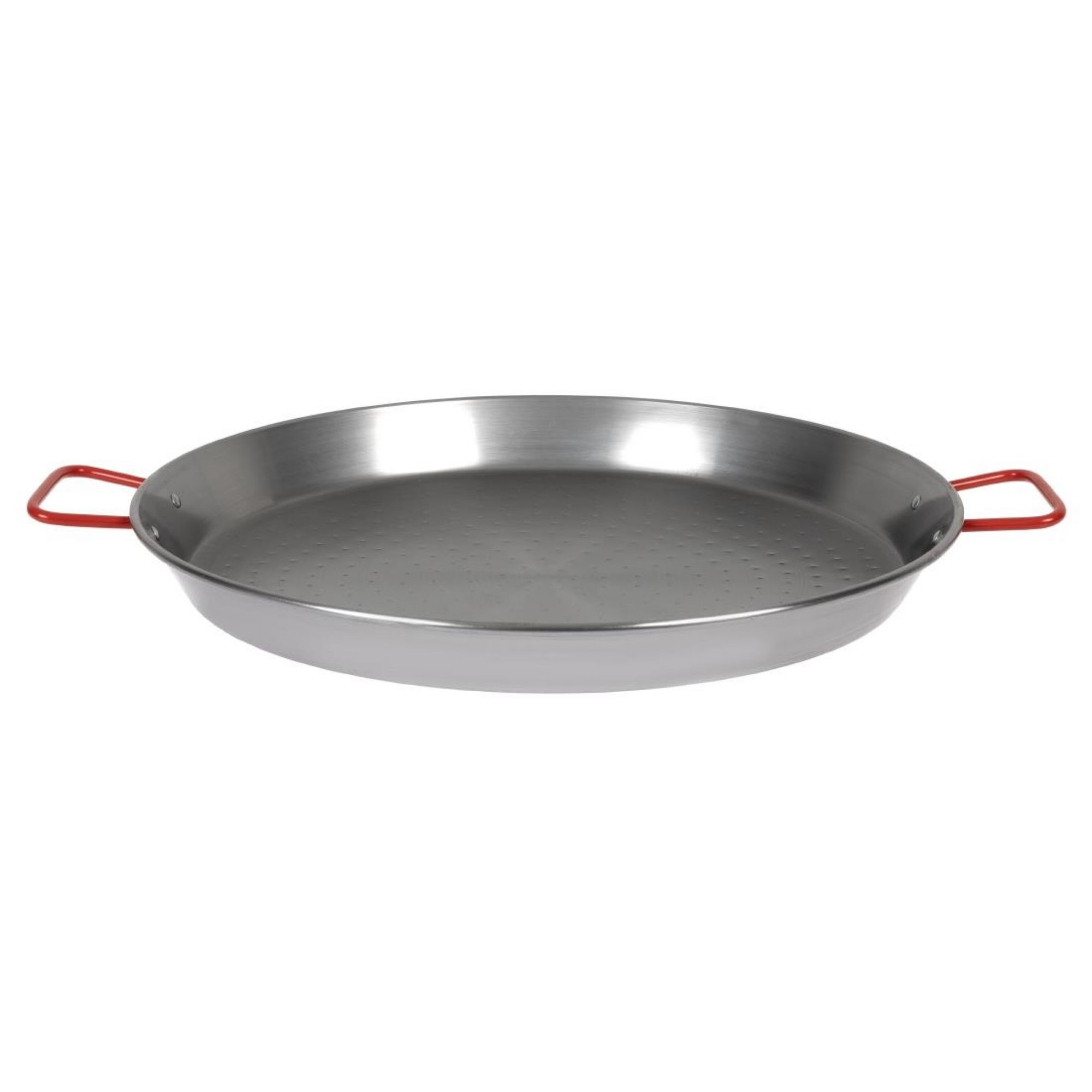 Signature red built-in handles make the pan easy to move and position, so you'll easily be able to lift and shake the pan during cooking if required. Suitable for use with paella burners, open fires, and gas hobs (sold separately), the pan is ideal for commercial use.