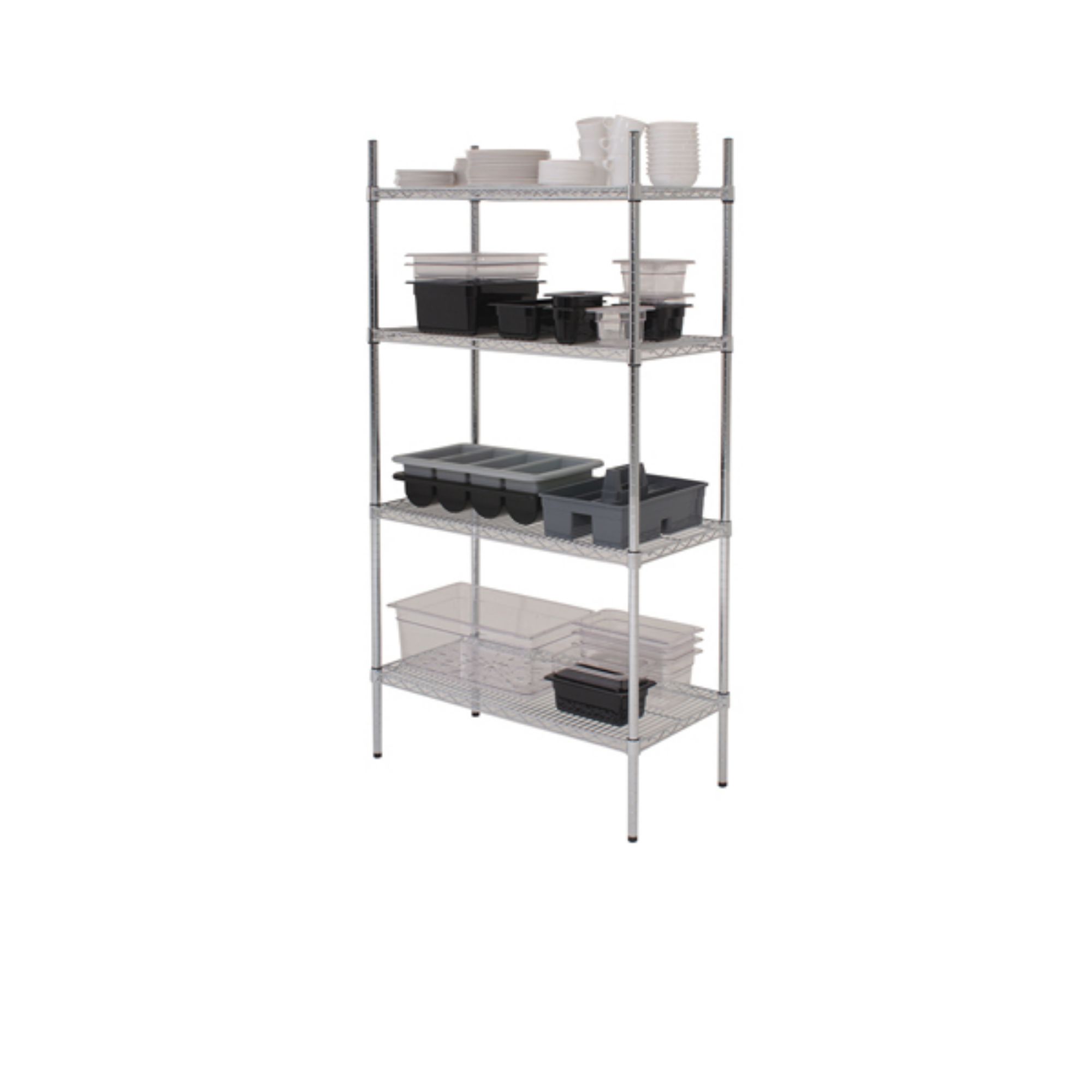 The GenWare Racking Unit, brought to you by Caterboss, is a versatile and sturdy 4-tier wire racking solution. Ideal for use in kitchens, dry stores, and various other environments, this chrome-plated racking system provides the flexibility and storage space optimization you need. With an impressive range of widths, this racking unit allows you to fully leverage your storage space.