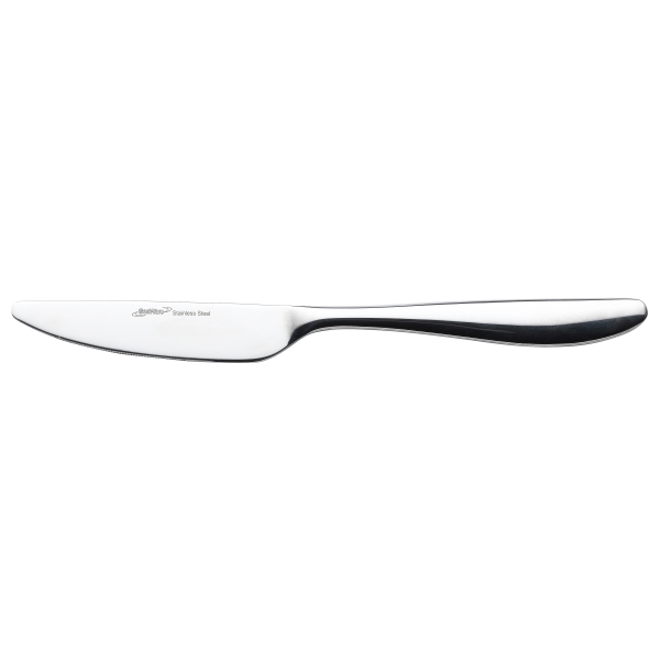 The Genware Saffron Table Knife is a perfect blend of style, substance, and value, exclusively available at Caterboss. As part of the esteemed GenWare cutlery collection, this knife exhibits a unique design conceived by Neil Jeffree MA, featuring simple yet elegant ovals and extended profiles that lend a contemporary touch to any table setting. It is manufactured from 18/0 high-grade stainless steel that is highly polished for an exquisite and flawless finish.