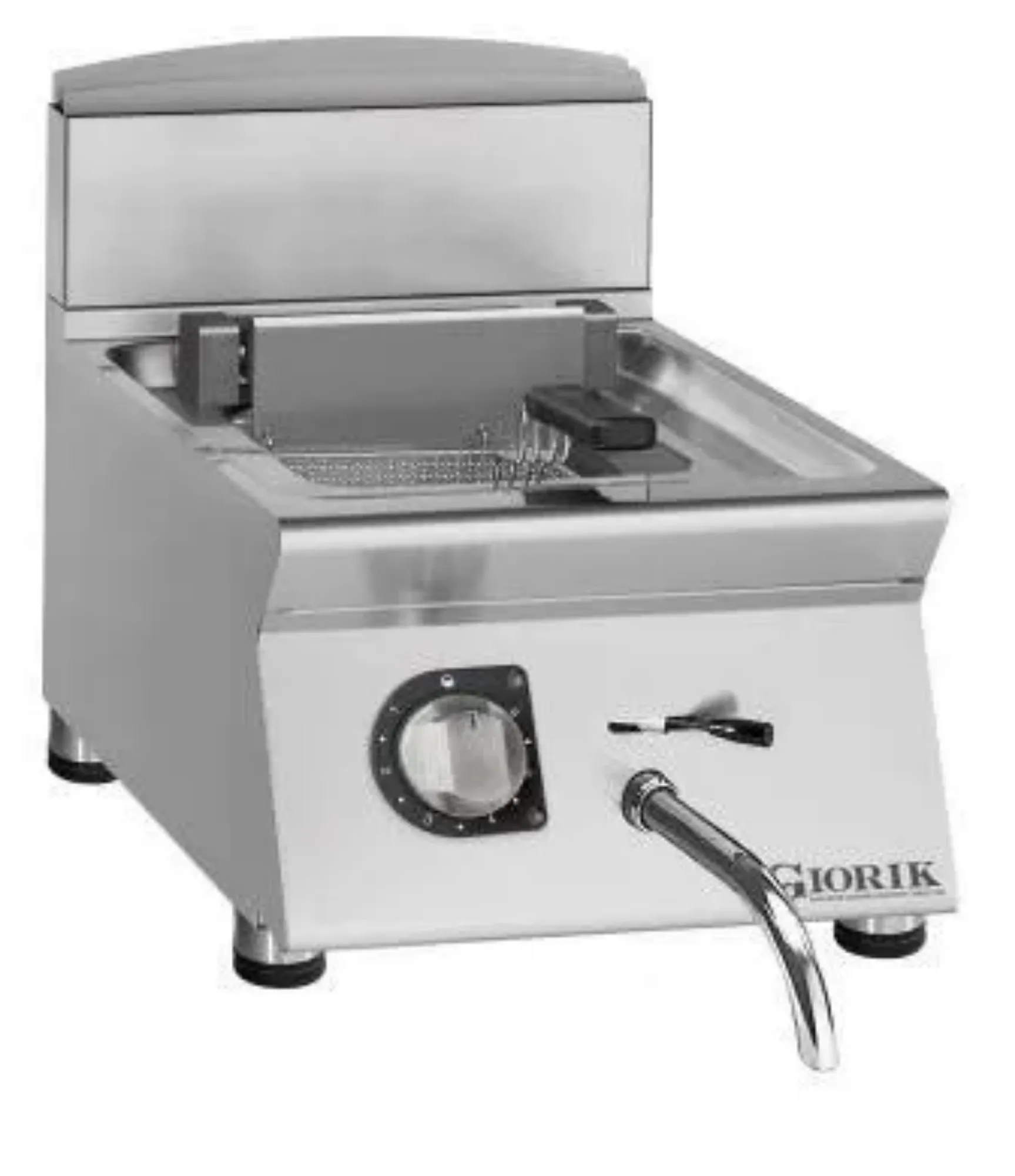 The Giorik 70 Top FE7110T is a high-quality, 10-liter single tank electric fryer designed for professional kitchens. This fryer is engineered to deliver exceptional performance and efficiency, making it an ideal choice for restaurants, cafes, and catering services. With its robust construction and advanced features, the Giorik 70 Top FE7110T ensures consistent frying results and long-lasting durability. The fryer is equipped with precise temperature controls, allowing chefs to achieve the perfect frying conditions for a variety of foods. Its spacious 10-liter capacity is perfect for handling large volumes, making it suitable for busy kitchen environments. The sleek design and easy-to-clean components make maintenance simple, ensuring the fryer remains in top condition with minimal effort. Whether you're frying crispy fries, golden chicken, or delicate seafood, the Giorik 70 Top FE7110T provides the reliability and performance needed to meet the demands of a professional kitchen.