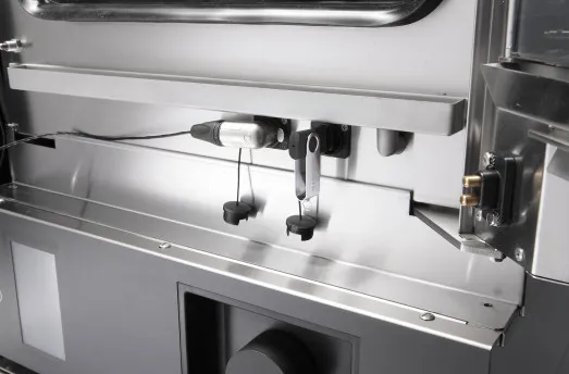 "Delta T" cooking mode with core probe supplied for slow cooking of meat joints, reducing shrinkage and increasing yield.