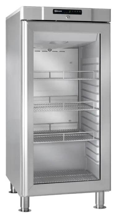 The Gram COMPACT KG 310 RH 60HZ LM 3M Marine Spec Glass Door Cabinet Refrigerator is designed as part of a range intended for use in the galleys of ships, boats, or oil platforms. It features significantly different specifications compared to models used ashore. The refrigerator is equipped with three stainless steel marine shelves, which are fixed to the supports to ensure no movement during heavy sea conditions. Additionally, it has 50mm high front and rear edges, along with one standard stainless steel bottom shelf.