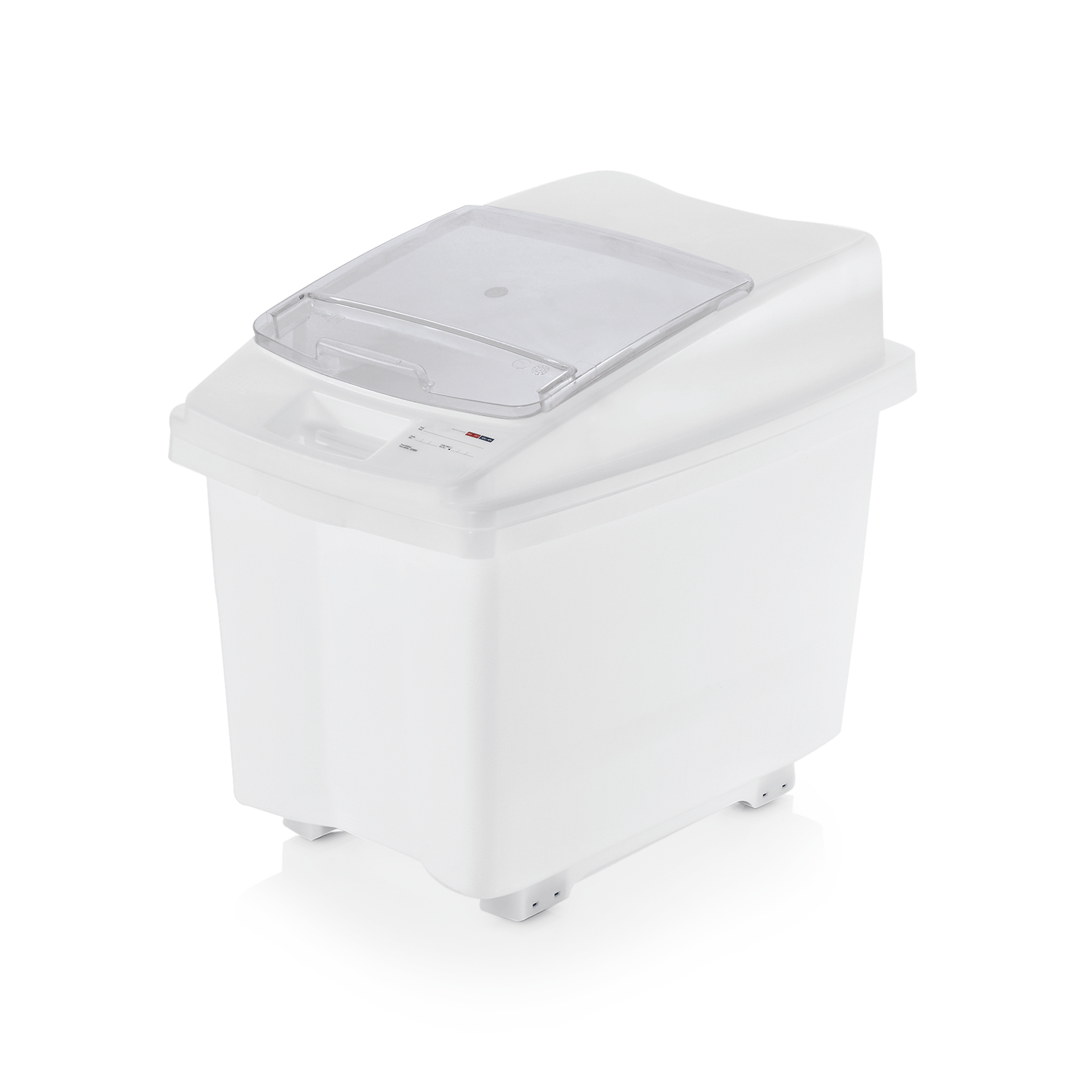 The container can be color-coded based on the HACCP system and comes with a hermetically sealing lid. It is NSF-certified and equipped with four fixed castors without brakes.