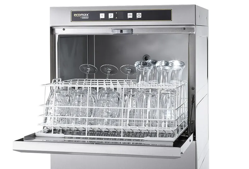 The Hobart Ecomax G504SW-10B, formerly known as G504SW, is an undercounter glass washer from Hobart and is the largest size in the Ecomax range, featuring a 500 x 530 mm rack and a built-in water softener. With fast wash times capable of handling 60 racks per hour and a 25-pint glass capacity, the G504SW-10B is ideal for installation behind or under a bar. It is equipped with easy-to-use electronic controls and a digital temperature indication display to minimize operator errors. This reliable, German-built glasswasher is an excellent choice for those starting up their business. The G504SW-10B is also available without a water softener, under the model number G504W-10B.