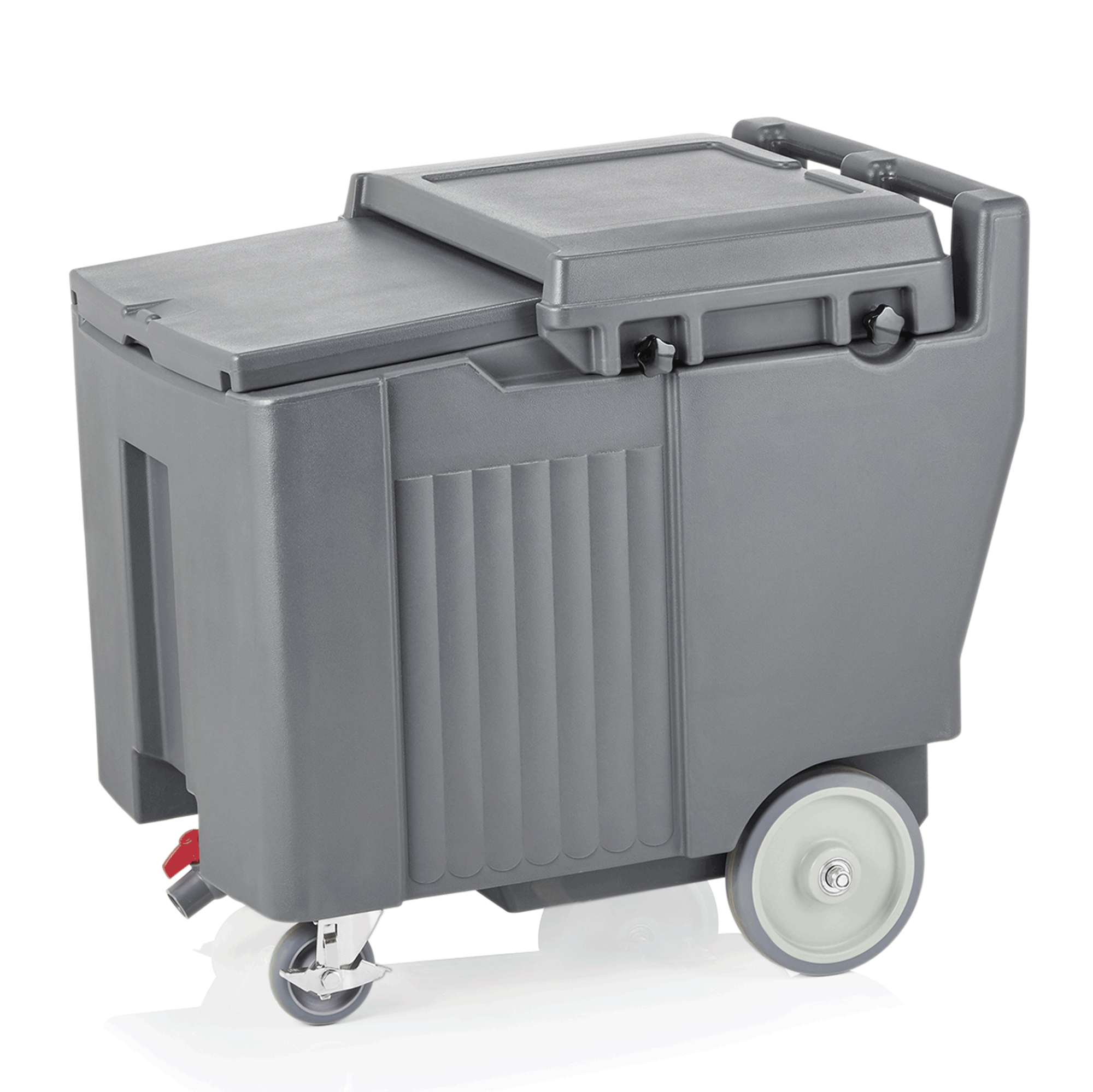This product features an outlet tap and is equipped with four castors, two of which are swivel castors with brakes.