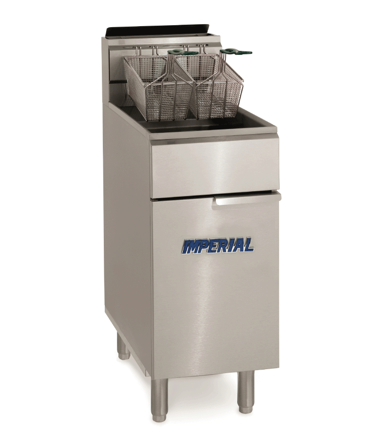 The Imperial CIFS-40 Freestanding Gas Fryer is a powerful, commercial-grade kitchen appliance designed to handle large-scale frying tasks, with the capacity to fry up to 40 pounds of food per hour. Constructed from stainless steel, this fryer is both durable and easy to clean, ensuring longevity and ease of maintenance. It is equipped with adjustable temperature controls, a basket lift system, and a reliable thermostat to maintain consistent temperatures, making it a dependable choice for any commercial kitchen. With its robust design and reliable performance, the Imperial CIFS-40 Freestanding Gas Fryer is an ideal addition to any professional culinary environment.