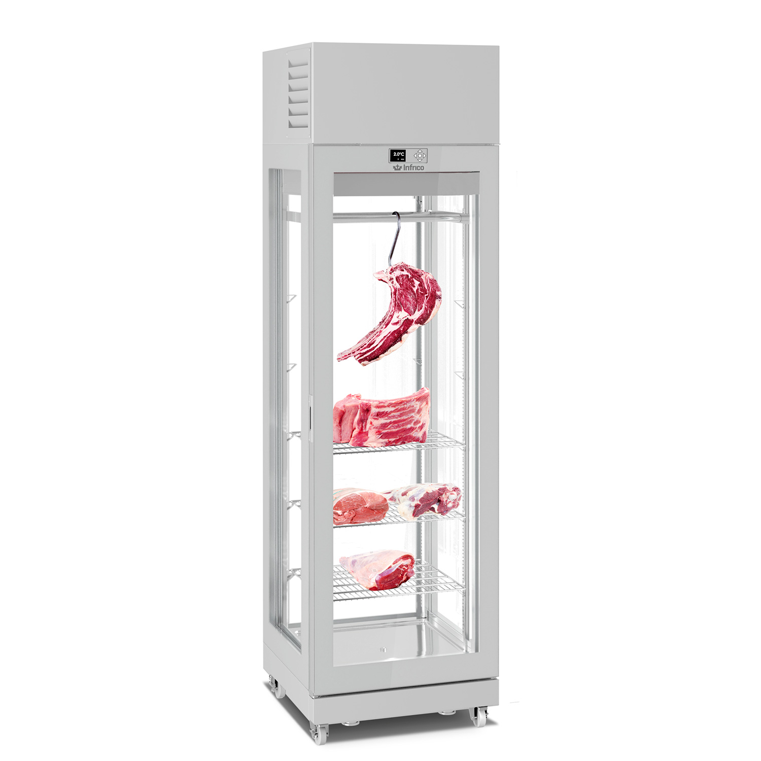Infrico AMC6714XL Dry Aging Meat Maturation Cabinet (AMC Series) is a professional upright solution within the Cavas & Dry Aging category, designed for controlled dry maturation of meat. By maintaining stable temperature and humidity, it supports the traditional ageing process where meat can lose around 10%–20% of its liquids over 5–8 weeks, helping intensify flavour and deliver a distinctive finished result.