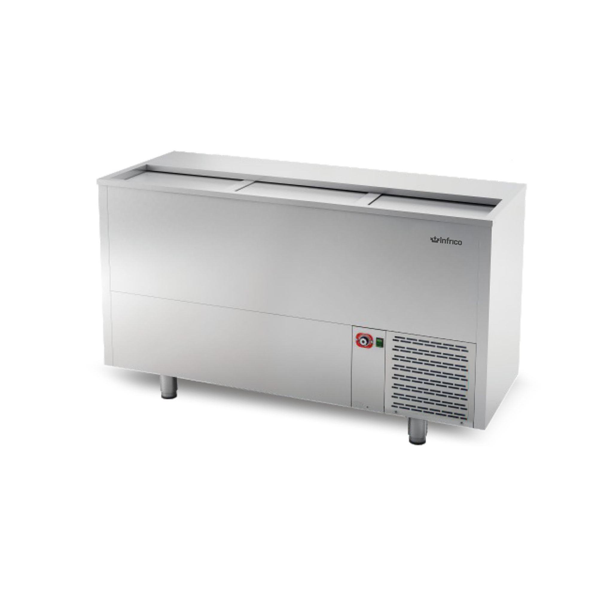 The Infrico IEB 150 (model code IEB150) is an I-line IEB Series bottle cooler designed as a front bar chest cooler for busy hospitality service. With a footprint of W 1479 x D 724 x H 800 mm, it suits back-bar and front-of-house setups where quick access to chilled bottles is essential.