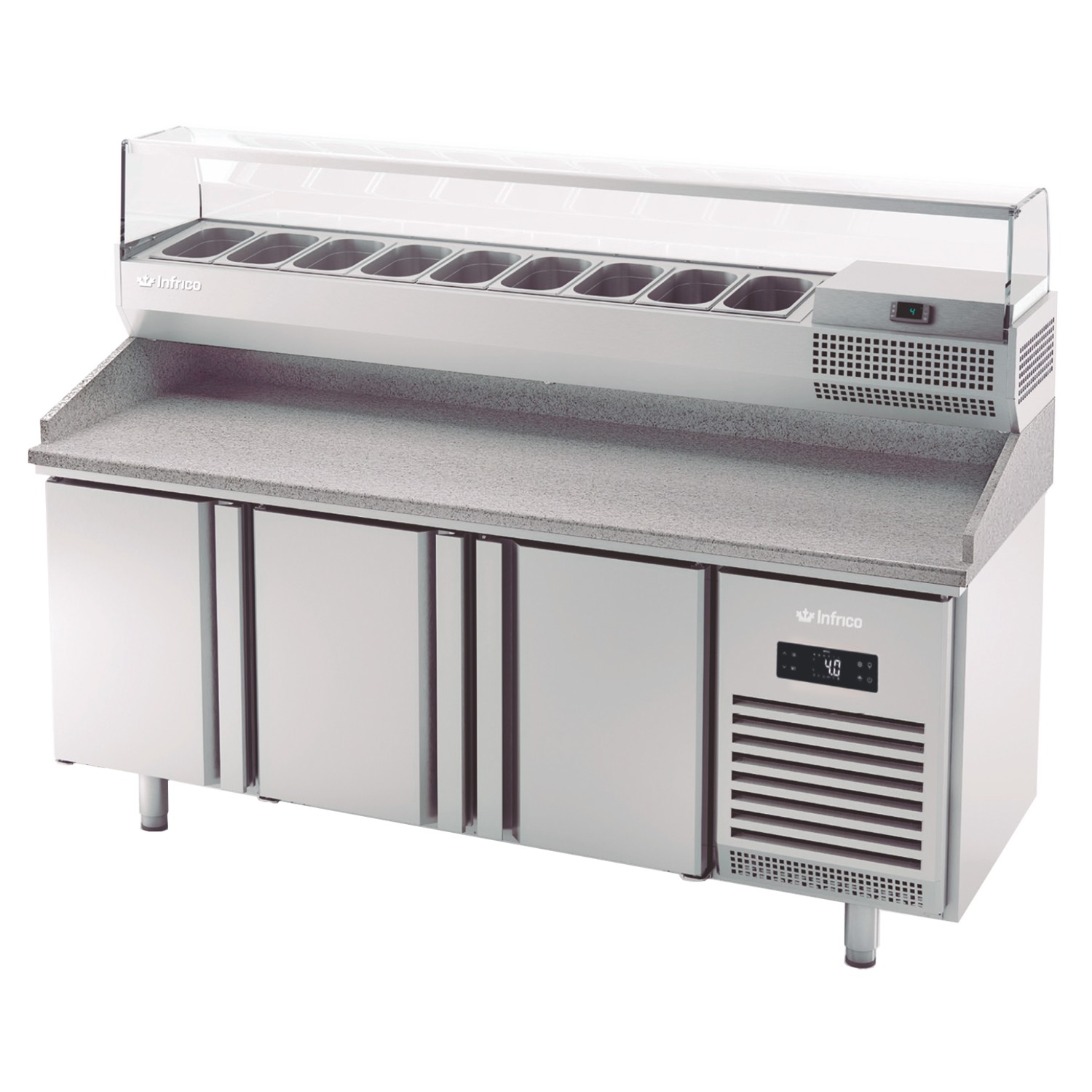 Infrico MPG 1980 (MPG1980) is a refrigerated pizza table built for busy service where prep space and reliable chilled storage need to work together. Positioned in the Undercounters range within the Series GN1/1 700, this pizza undercounter refrigerator is sized to fit smoothly into professional kitchen lines while supporting GN 1/1 workflows.