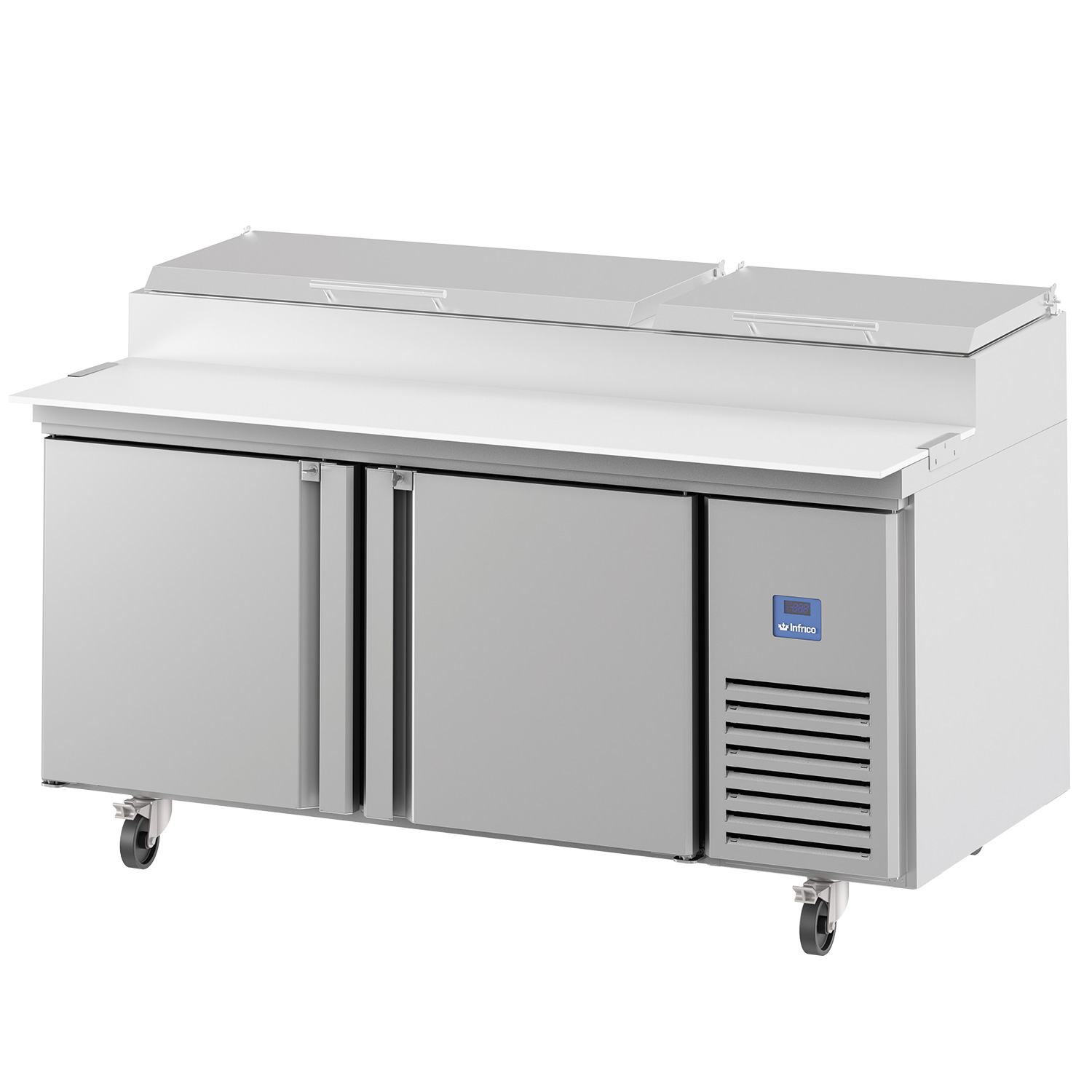 Infrico MR 67 EN (MR67EN) is a professional refrigerated salad and pizza cooling table from the American line, designed for busy pizza and prep sections in restaurants, cafés and takeaways across Ireland. With a generous footprint of W 1710 x D 830 x H 1106 mm, it combines a hygienic prep surface with dependable cold holding for service.