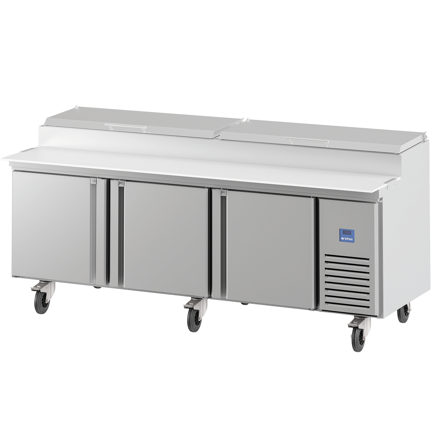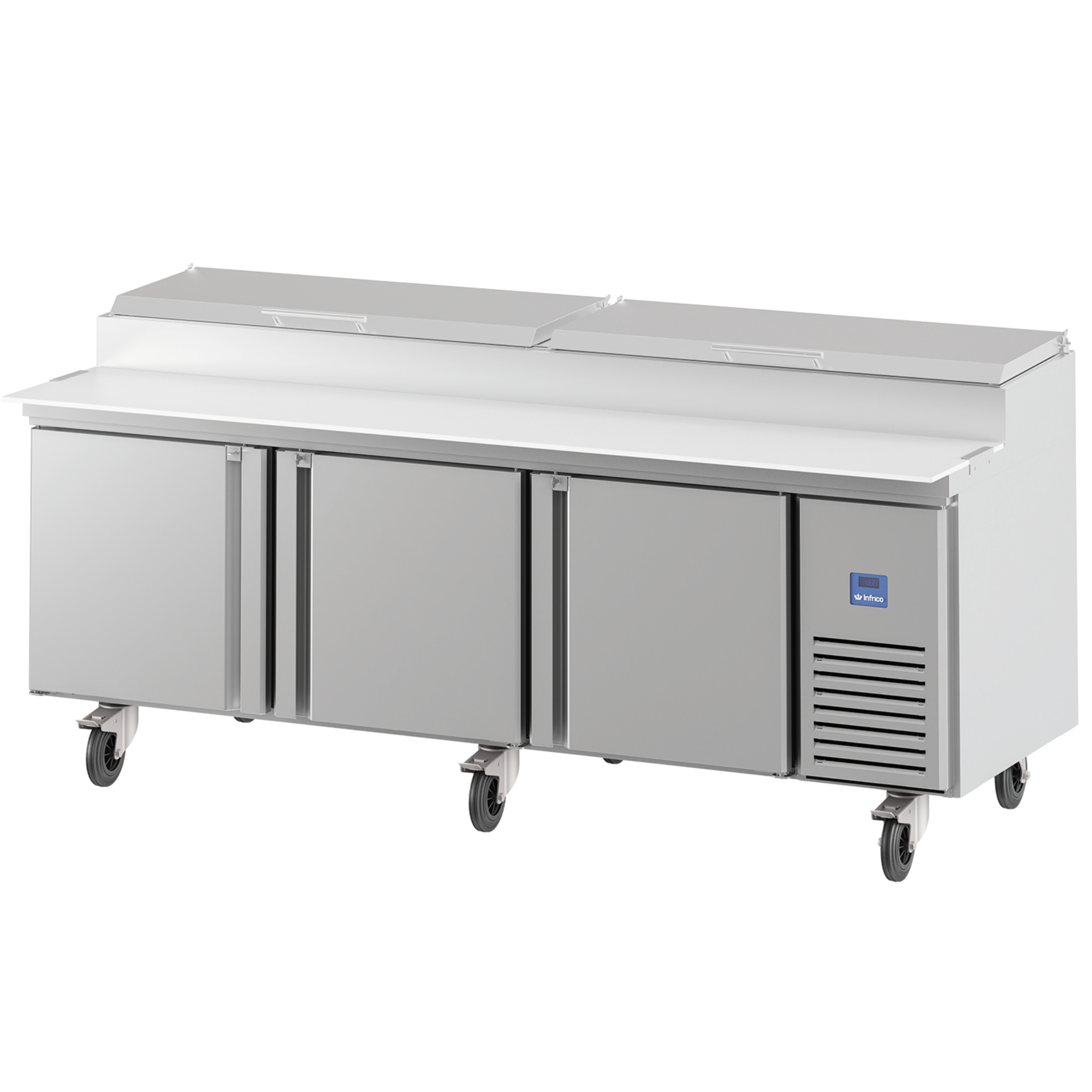 Infrico MR 93 EN (MR93EN) is a robust refrigerated salad and pizza cooling table from the American line, designed for busy pizza salad prep tables in professional kitchens. With a generous footprint of W 2370 x D 830 x H 1106 mm, it suits high-output service where chilled storage and a practical prep surface need to work together.