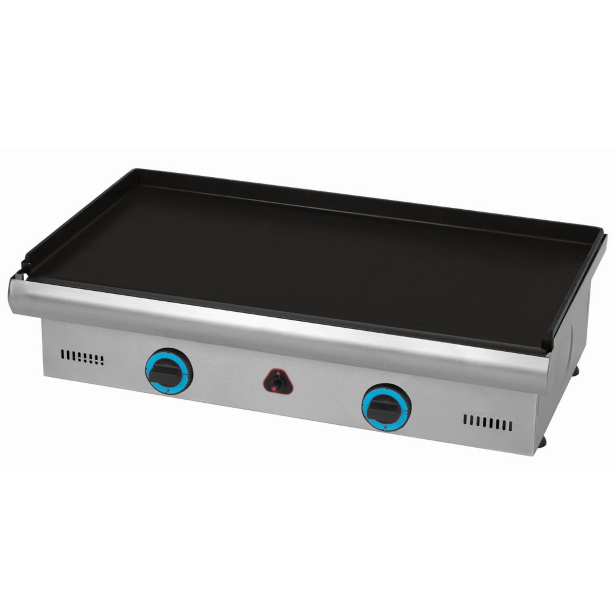 Ignition is via electric piezo, keeping start-up simple during peak periods. A horseshoe-style burner with twin flame outlets is designed to spread heat evenly across the plate, supporting consistent results from corner to corner.