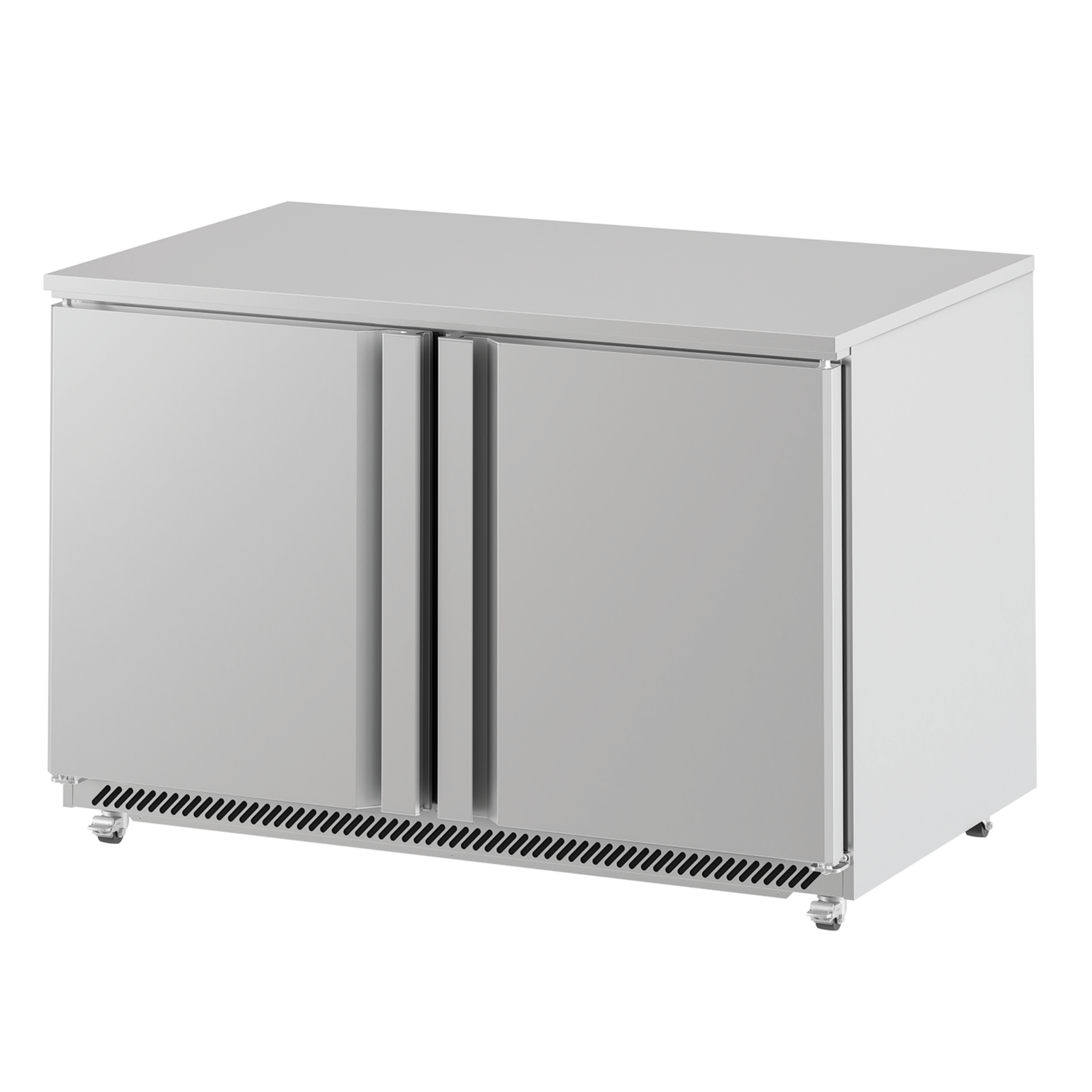Built for day-to-day professional use, the UC 36 F combines an AISI 304 stainless steel worktop with AISI 430 stainless steel sides, supported by a fully injected compact cabinet structure for a solid, easy-clean finish in demanding back-of-house environments. It sits on 100 mm castors, with brakes fitted to the front set to help keep the unit stable during loading and service.