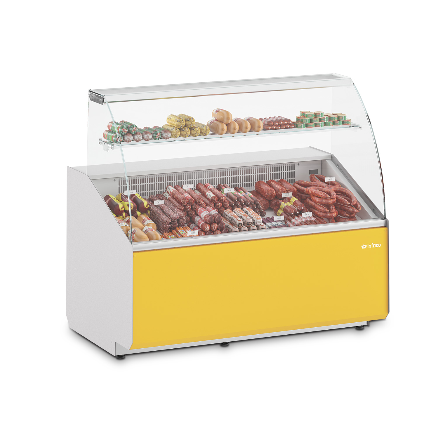 Infrico VJU 9 C (VJU9C) is a Juliet display case designed for clear front-of-house presentation with reliable refrigerated performance. The curved glass design and panoramic, frameless glazing maximise visibility, helping customers see your offer from multiple angles—ideal for busy service in cafés, hotels and food-to-go counters.