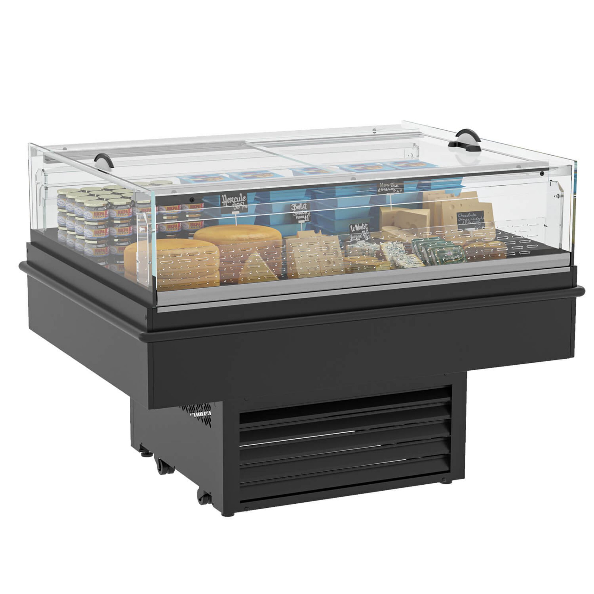 With two display levels and an integrated refrigeration group, the VVS 12 suits spaces where you want to switch between assisted service and self-service. The tempered glass front improves visibility and is intended to help reduce energy use without sacrificing product presentation.