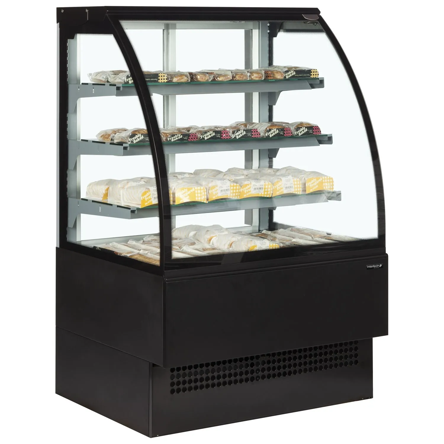 The Interlevin Italia Range of Evo Hot Display Cabinets features illuminated glass shelves, providing an excellent display counter for your merchandise. The unit's glass is pre-built, requiring only the placement of shelves during installation. The curved front glass hinges forward, facilitating easier cleaning. Additionally, the cabinet is fan-assisted, ensuring even temperature distribution and is fully automatic.