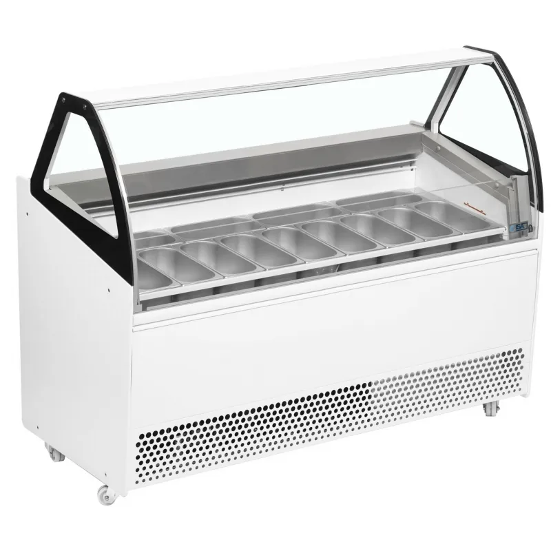 Buying ice cream is a visual, mouth-watering experience, and the Bermuda View comes with a super low front glass to enable all your customers, including children, to see what they are buying. Besides its super low front glass, it is a ventilated (fan-assisted) display, providing the advantages of even temperature distribution. It also features separate understorage, which is unique for a ventilated unit, making it a highly versatile cabinet. Backup stock is only a door opening away, and the front glass conveniently hinges forward to make cleaning easier. It will be a popular choice for the cost-conscious yet discerning ice cream seller.