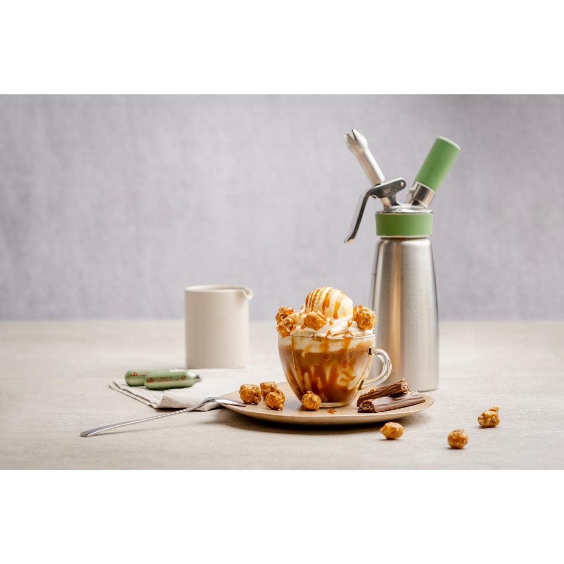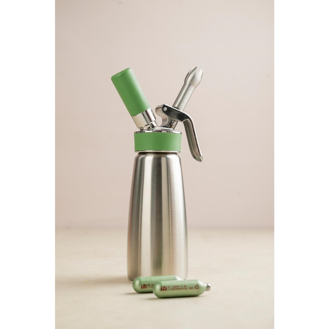 Top your desserts and beverages to perfection with iSi Professional ECO Series cream whipper charger bulbs - a sustainable alternative to standard charger bulbs for your kitchen. Each of the 24 chargers in this pack contains 8.4g of pure N2O, suitable for cream whippers, ensuring consistent performance for various culinary applications.