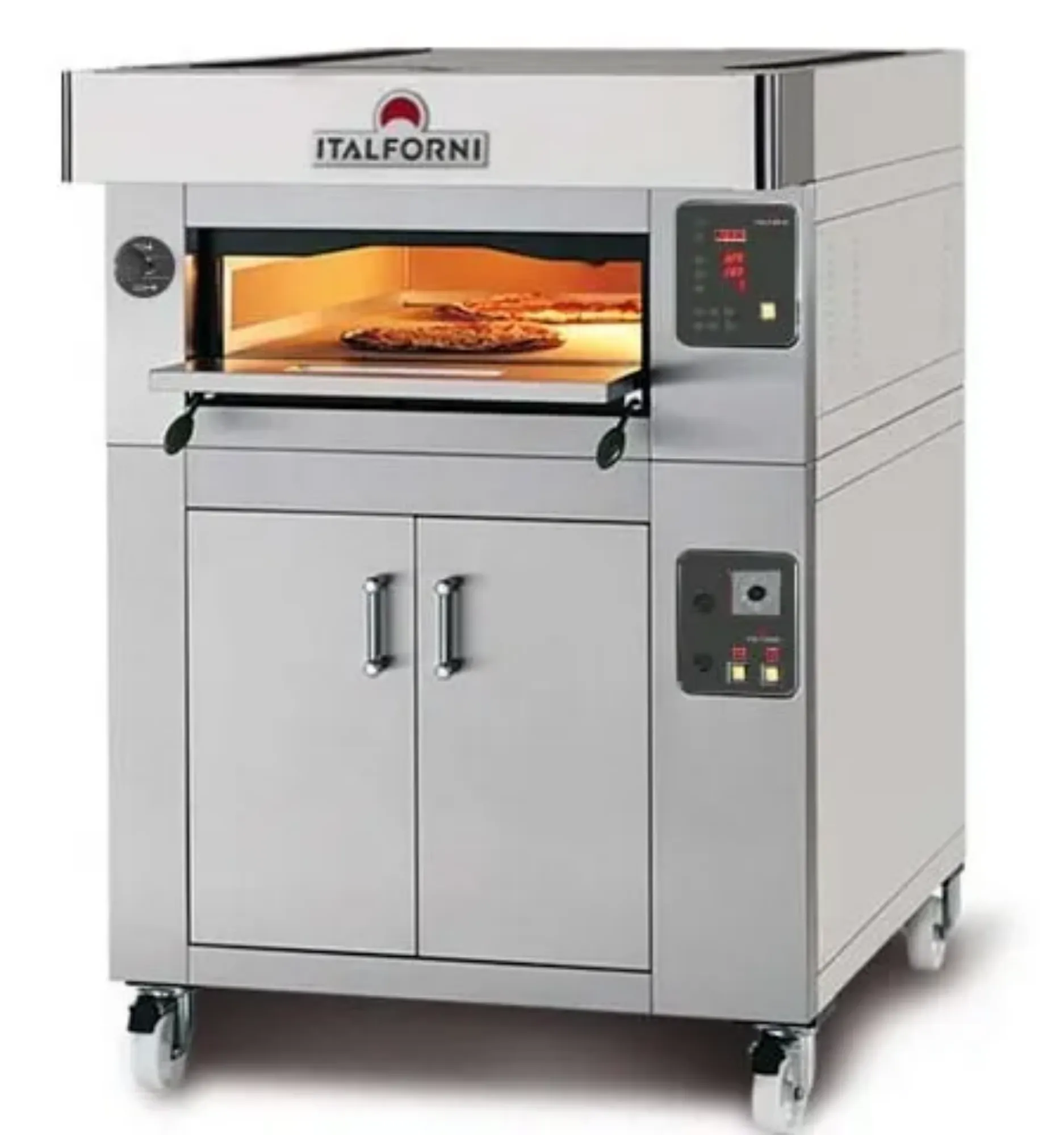 Single deck oven with refractory brick oven base will take 6 x 300mm pizzas per deck