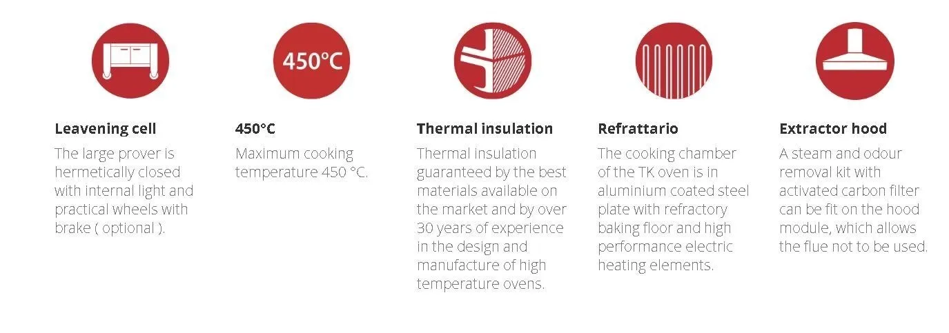 The Italforni TKA2 is one of our most popular twin deck pizza ovens, ideal for pizzerias, pubs, and takeaways. Despite its compact size, it still allows you to cook four 12-inch pizzas simultaneously. The TKA2 features thermal insulation guaranteed by the selection of the best materials available on the market, backed by over 30 years of experience in the design and manufacture of high-temperature ovens.
