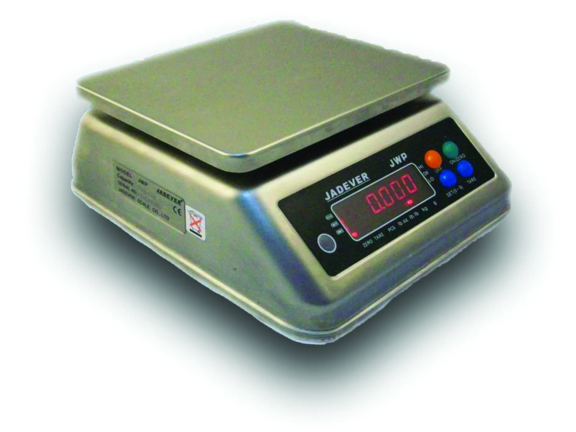 The Jadever JWP scale is ideally suited for use in very wet areas as it is fully waterproof, with IP68 approval, and is housed in stainless steel. It comes standard with an internal rechargeable battery, which is charged with a 220V mains lead. The maximum weight capacity is 15kg, measured in increments of 1g.