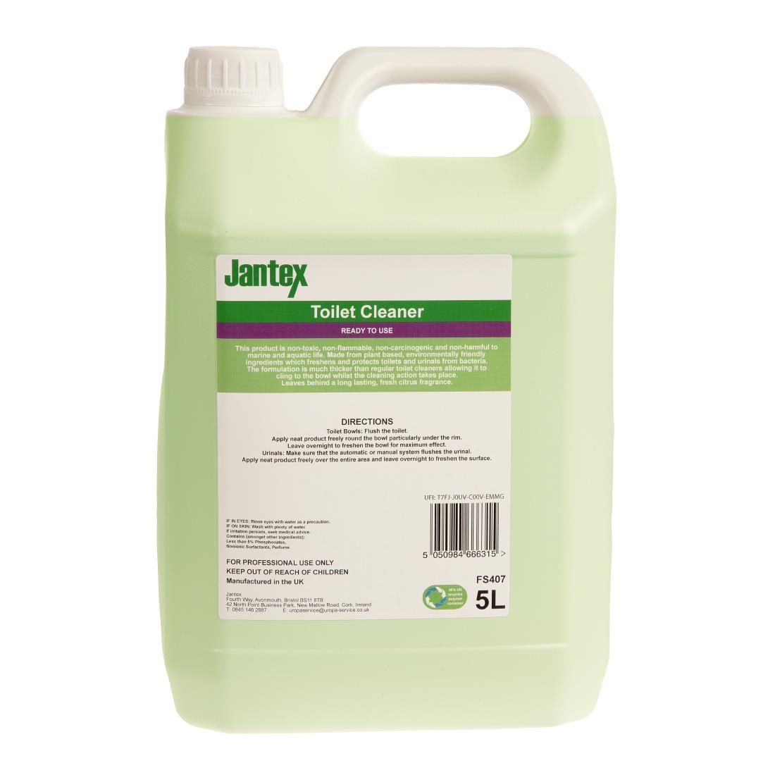Keep your facilities and the planet clean with this 5L toilet cleaner from Jantex Green. This solution's plant-based formula makes it non-toxic, non-flammable, non-carcinogenic, and non-harmful to marine and aquatic life, providing a toilet cleaner that's kinder to both staff and the environment than traditional solutions.