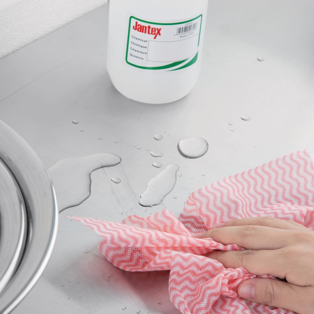 This 100-roll of non-woven red cloths from Jantex is ideal for a variety of cleaning tasks. They dry quickly and do not leave fibers behind on your worktops, appliances, and other hard surfaces after cleaning. The rolls are also available in four colors, making them ideal for applying color-coded cleaning, which helps prevent cross-contamination. Achieve the perfect finish with these non-linting cloths from Jantex. They are suitable for all catering and hospitality establishments.