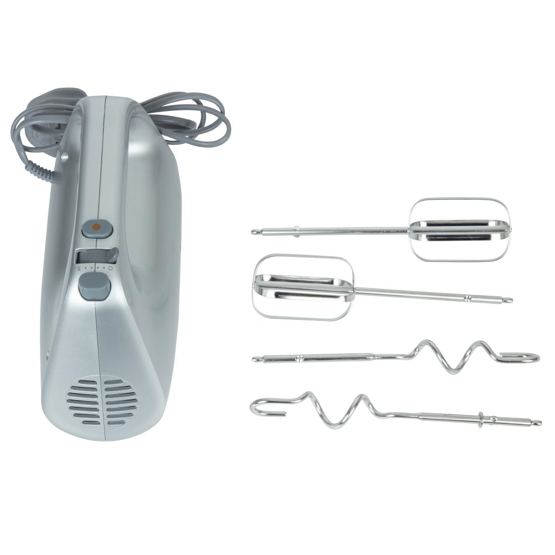 Delivering quality results at speed, the Kenwood HMP30 hand mixer is a great addition to any home kitchen. Combining power with efficiency in a compact unit, this silver electric mixer makes it easy to whip and beat ingredients with precision.