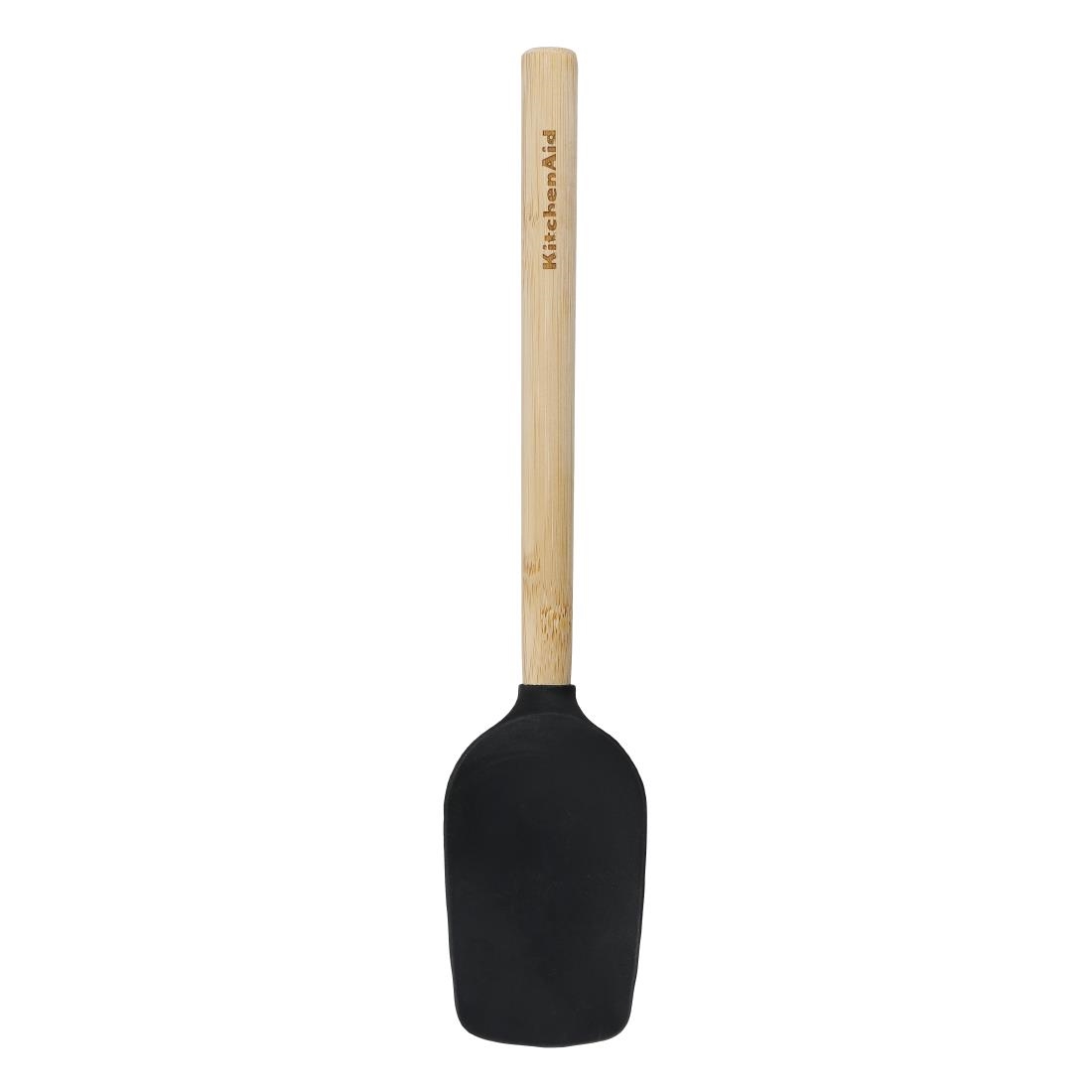 Ideal for scraping foods from tubs and bowls, as well as turning and lifting, this KitchenAid bamboo spoon/spatula is a versatile tool. The flexible silicone head features curved sides to reach even the most stubborn spots and is heat-resistant up to 260°C / 500°F. It's safe for use on all cookware, including ceramic, cast iron, and non-stick, and is dishwasher safe for easy cleaning.