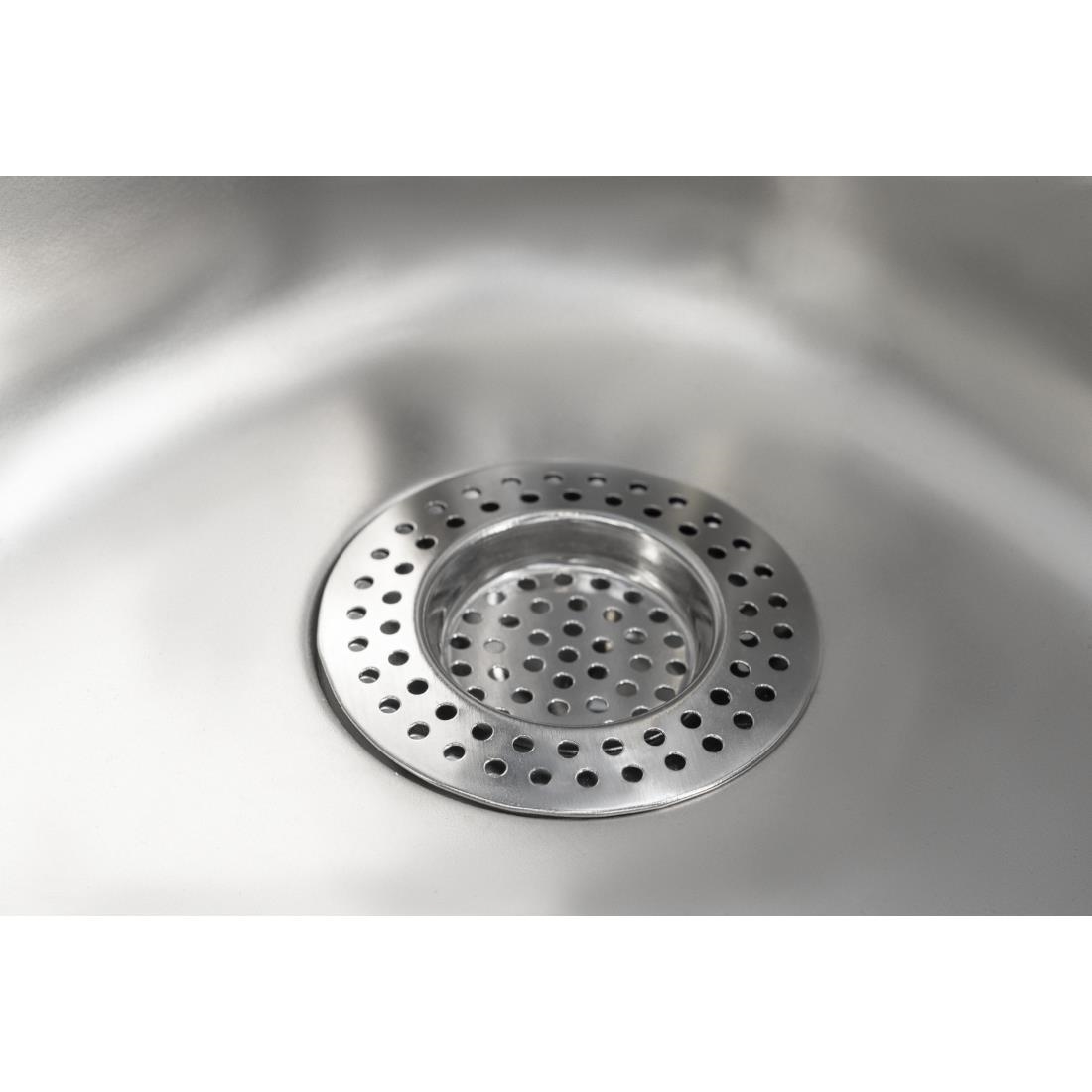 Prevent sink blockages with this round 75mm strainer from KitchenCraft. Slotting simply into most kitchen plug holes, the holes in the strainer are small enough to catch food waste and debris, but large enough to allow water to drain from the sink quickly. Made from stainless steel, this KitchenCraft strainer is both durable and rust-resistant. It is also dishwasher safe, allowing you to keep it clean and hygienic.
