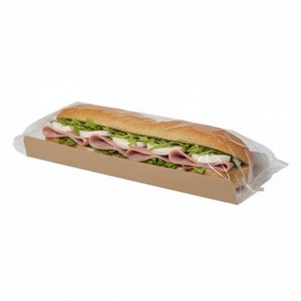 Our Kraft Baguette with Film packaging is designed to keep your baguettes fresh while providing excellent visibility and protection. This packaging solution combines sturdy kraft paper with a clear film bag, allowing customers to see the delicious baguette inside without compromising on freshness or quality. Ideal for bakeries, delis, and cafes, this kraft baguette packaging is perfect for both display and takeaway purposes.