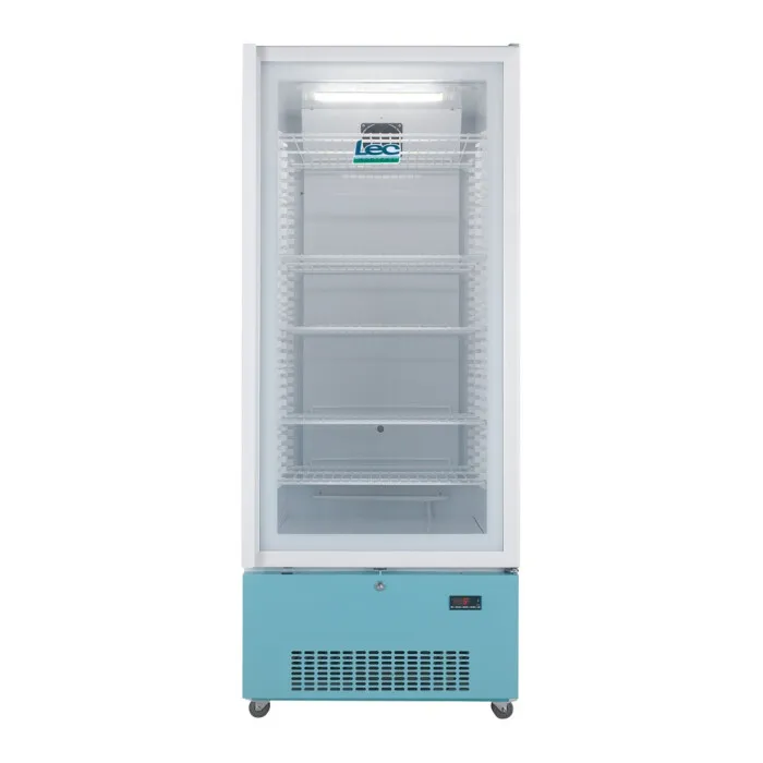 The LEC Medical PG1607C Pharmacy Glass Door Display Refrigerator is designed with roller castors, making it easy to position whether it is an under-counter or freestanding model. It features heavy-duty wire shelves that ensure optimal air circulation.