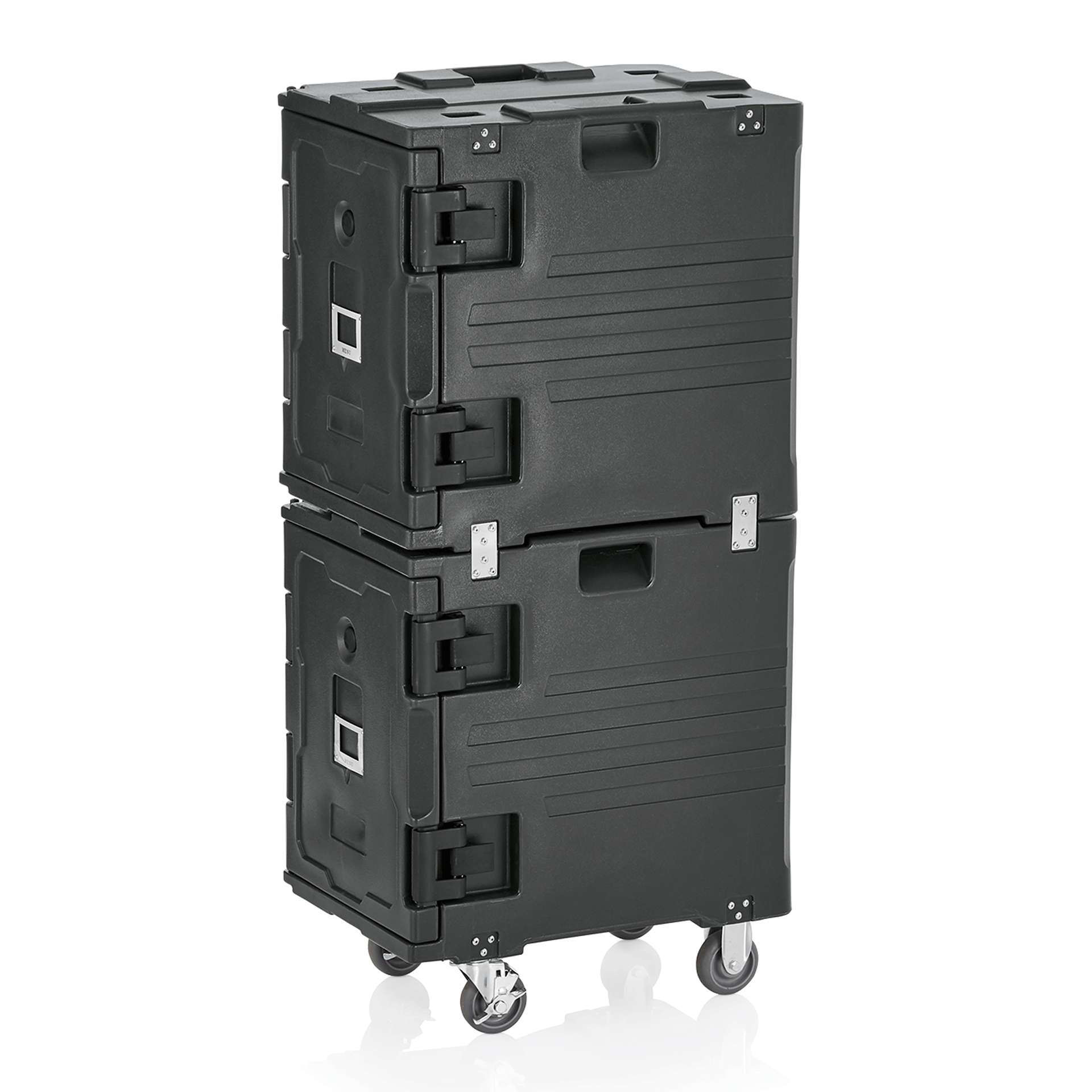 Keep hot mains and chilled desserts moving from kitchen to venue with confidence. The WAS Germany Double Thermal Transport Container GN 1/1 keeps food protected and at the right temperature in transit. Built for commercial workflows, it offers big capacity in a manageable footprint. Two insulated chambers, each approx. 57 x 40 x 50 cm, provide flexible loading, while 10 levels accept GN 1/1 trays for fast batching and separation. A tough plastic shell and polyurethane insulation deliver reliable performance with no power - ideal for vans, corridors and holding areas. At 68 x 48 x 135 cm, it passes through standard doorways; the 32.3 kg build stays stable yet easy to position. Smooth, non-porous walls wipe clean quickly between turns.