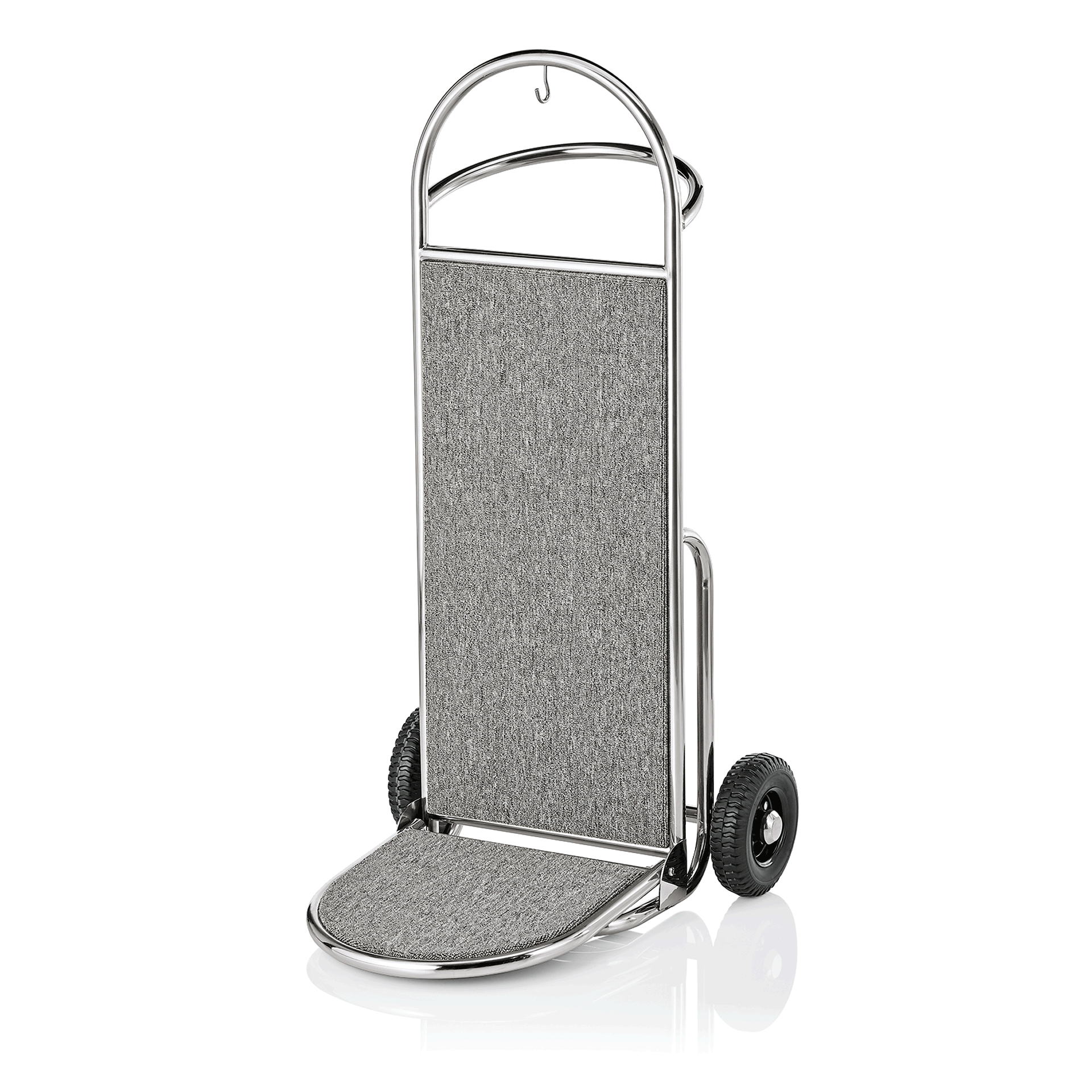 The product features a silver-colored design with two wheels, each having a diameter of 20 cm. It is constructed with a tubular frame that has a diameter of 2.5 cm. The utility space is foldable and measures 45 cm. The item is delivered fully assembled for your convenience.