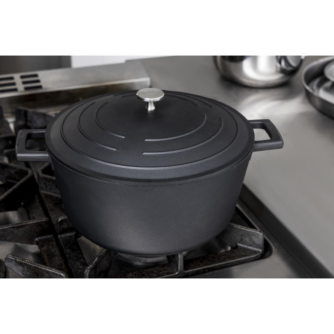 Make large casseroles, soups, stews and pot roasts easily with the Masterclass 5 Litre cast aluminium casserole dish. Made from a strong cast aluminium with a stainless steel base, the dish can be used on all heat sources, whether that's directly on a gas, electric or induction hob, or straight in the oven - the casserole dish has the flexibility to let you cook just as you like.