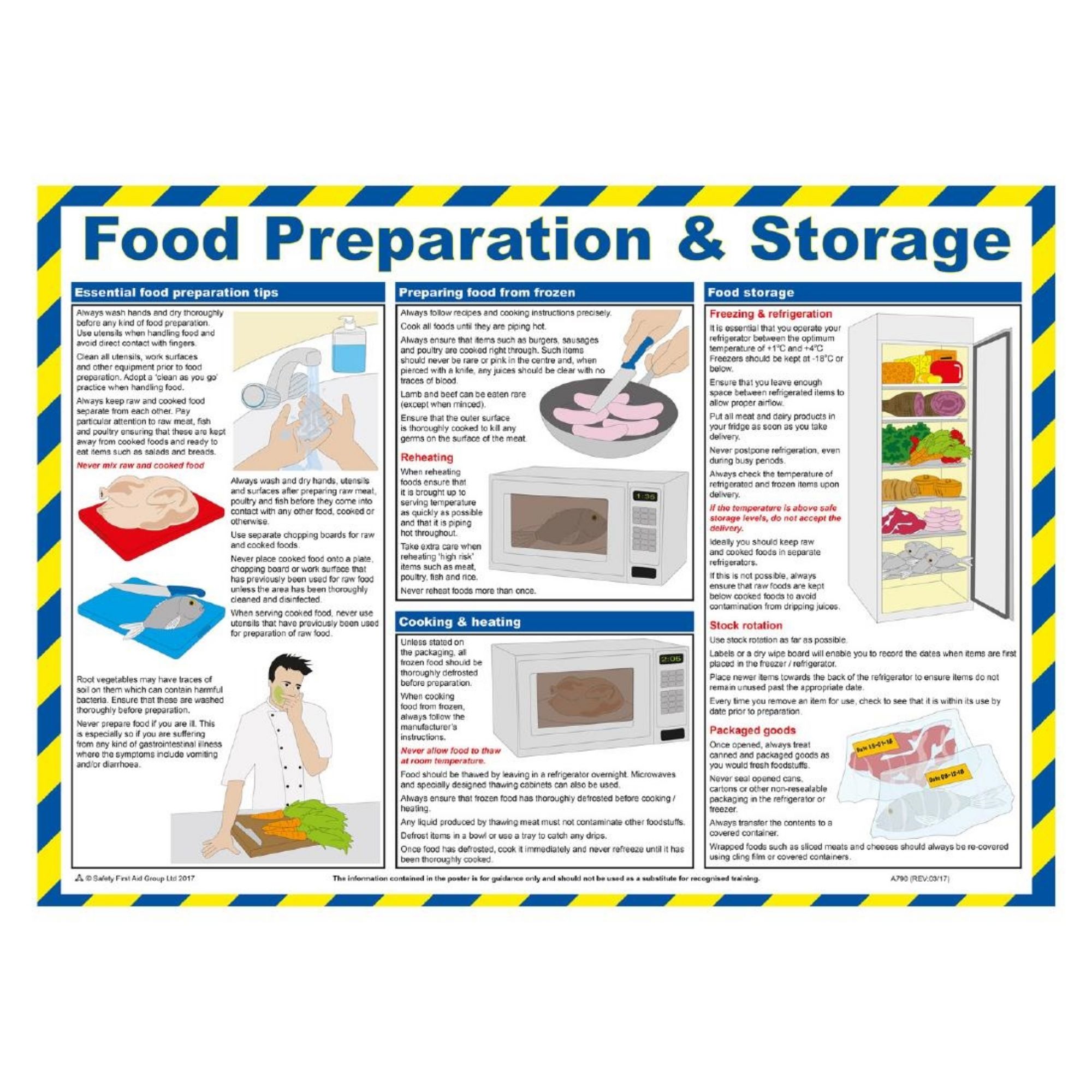 This full colour food preparation and storage poster from Mileta is designed to offer both trained and untrained staff clear vital information on food hygiene best practices. With bold, easy-to-follow graphics and simple, readable text, it's built to stand out in a busy kitchen environment and support safe food handling.