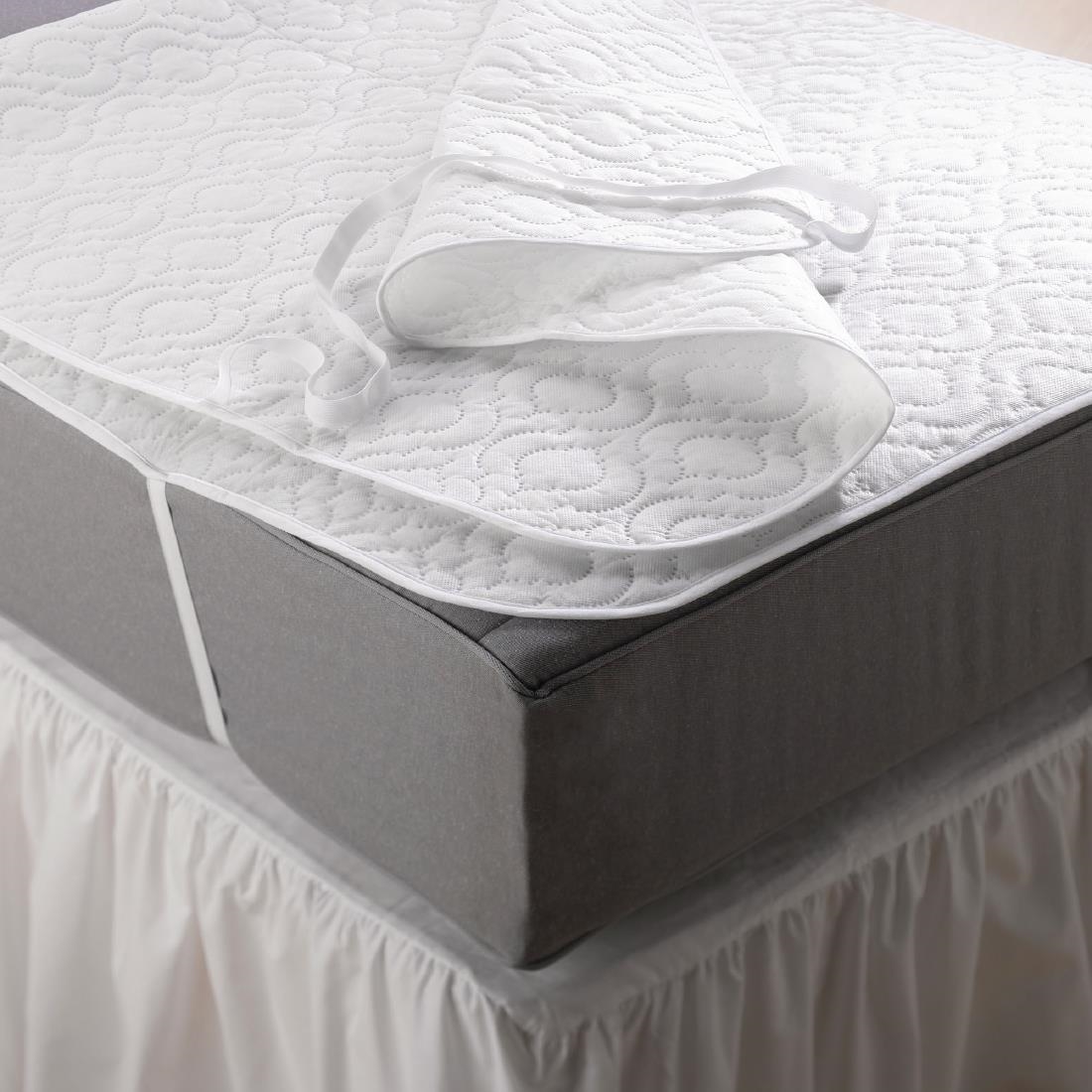 Protect your mattresses and keep your guests comfortable with a slim quilted protector. Constructed from polypropylene for durability, and with elasticated corner straps ensuring a secure fit, these protectors are ideal for any professional hospitality environment. Ideal for protecting your matresses against bacteria, stains and wear and tear. This protector is reversible and made from a lightweight 50g/m² fabric, ensuring the protector is barely noticed by guests. This sinlge sized protector has a zip link to enable you to combine single beds to become a double bed seamlessly.