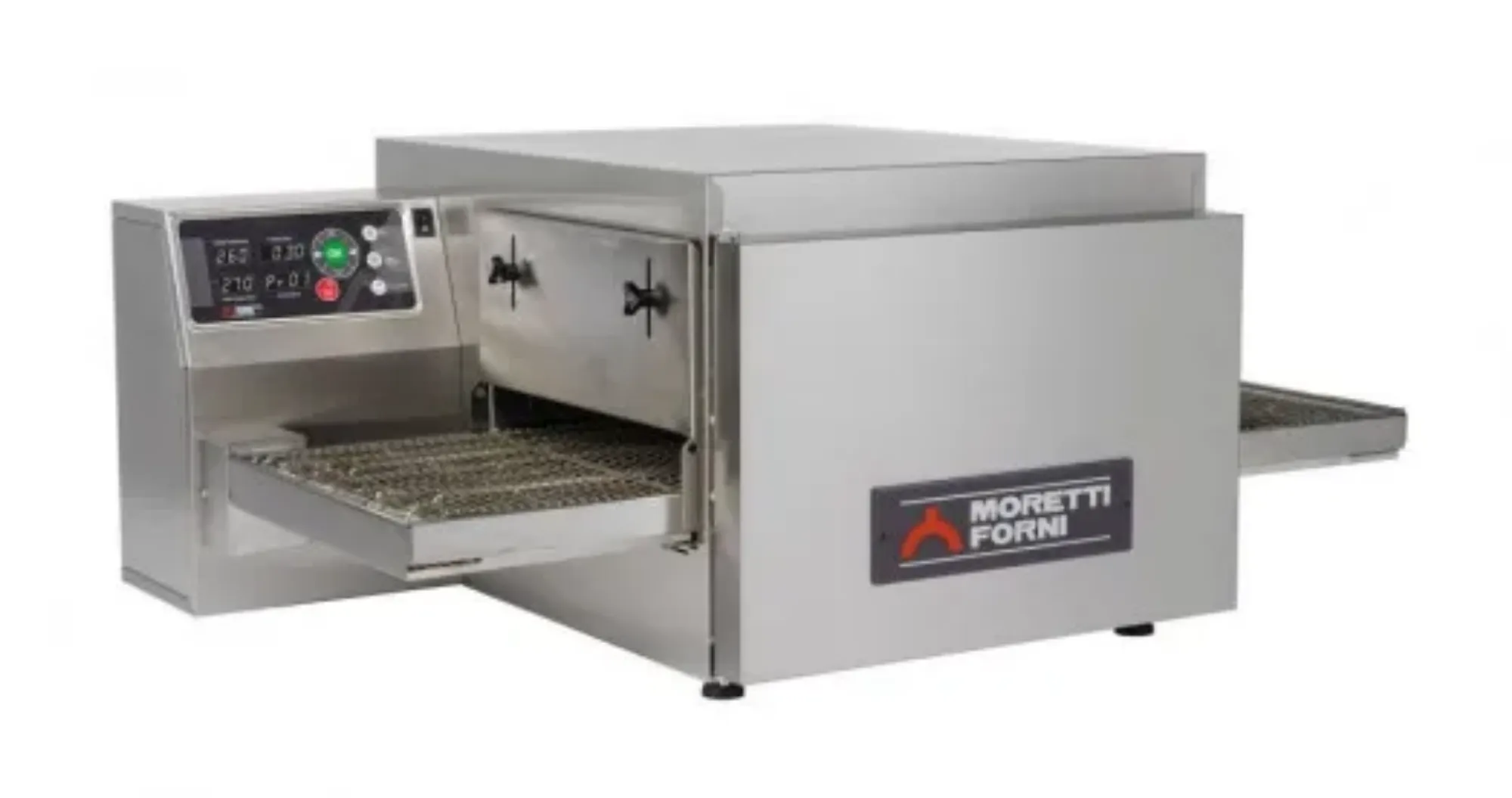 Electronic belt control which will automatically adjust if a heavy item is loaded into the oven