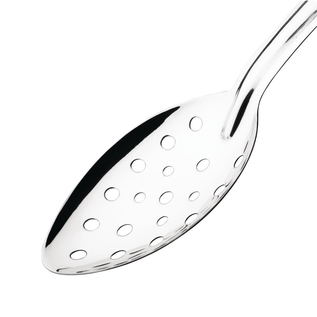 With its functional design, the Essentials perforated serving spoon is a must-have in any kitchen or buffet service area. The elongated handle allows you to plate up or serve dishes while safely keeping hands away from heat sources. The perforated bowl makes it easy to separate food from oils, water, or sauces.